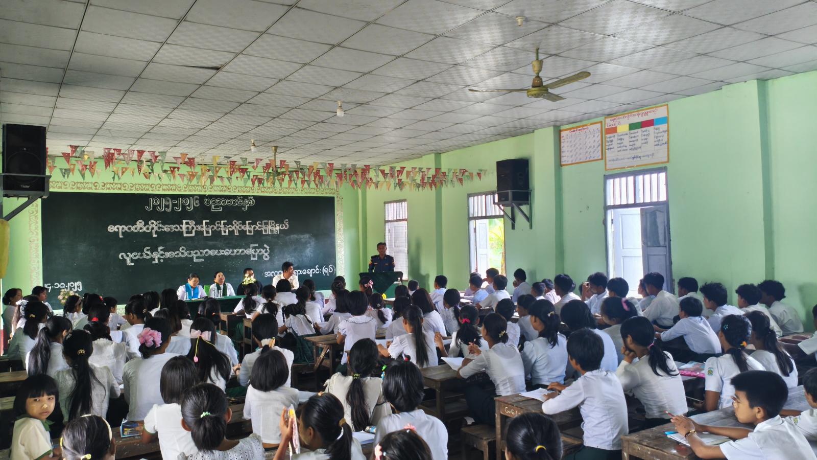 အခမ်းအနားတွင် အ.လ.က ဘုရားချောင်း (ရပ်) ကျောင်းမှ ကျောင်းအုပ်ဆရာမကြီး ဒေါ်အုန်းကြိုင်က အမှာစကားပြောကြားခဲ့သည်။ ဆက်လက်၍ မြောင်းမြခရိုင် ပြန်ကြားရေးနှင့်ပြည်သူ့ဆက်ဆံရေးဦးစီးဌာနမှ လက်ထောက်ညွှန်ကြားရေးမှူး ဒေါ်စန္ဒာကြည်က စာဖတ်ခြင်း၏အကျိုးကျေးဇူး ခေါင်းစဉ်ဖြင့် လည်းကောင်း၊ အားကစားနှင့်ကာယပညာဦးစီးဌာနမှ မြို့နယ်အားကစားမှူး ဦးစိုင်းဝေလင်းနောင်က လူငယ်နှင့်အားကစားခေါင်းစဉ်ဖြင့် လည်းကောင်း၊ မြို့နယ်ဥပဒေရုံးမှ ဒုမြို့နယ်ဥပဒေအရာရှိ ဦးအောင်သီဟက လူကုန်ကူးမှုဥပဒေအားလည်းကောင်း၊ မြို့နယ်မီးသတ်ဦးစီးဌာနမှ ဦးစီးအရာရှိ ဦးကျော်မင်းသူက မီးဘေးအန္တရာယ် ကြိုတင်ကာကွယ်ရေးခေါင်းစဉ်ဖြင့်လည်းကောင်း အသိပညာပေးဟောပြောခဲ့သည်။