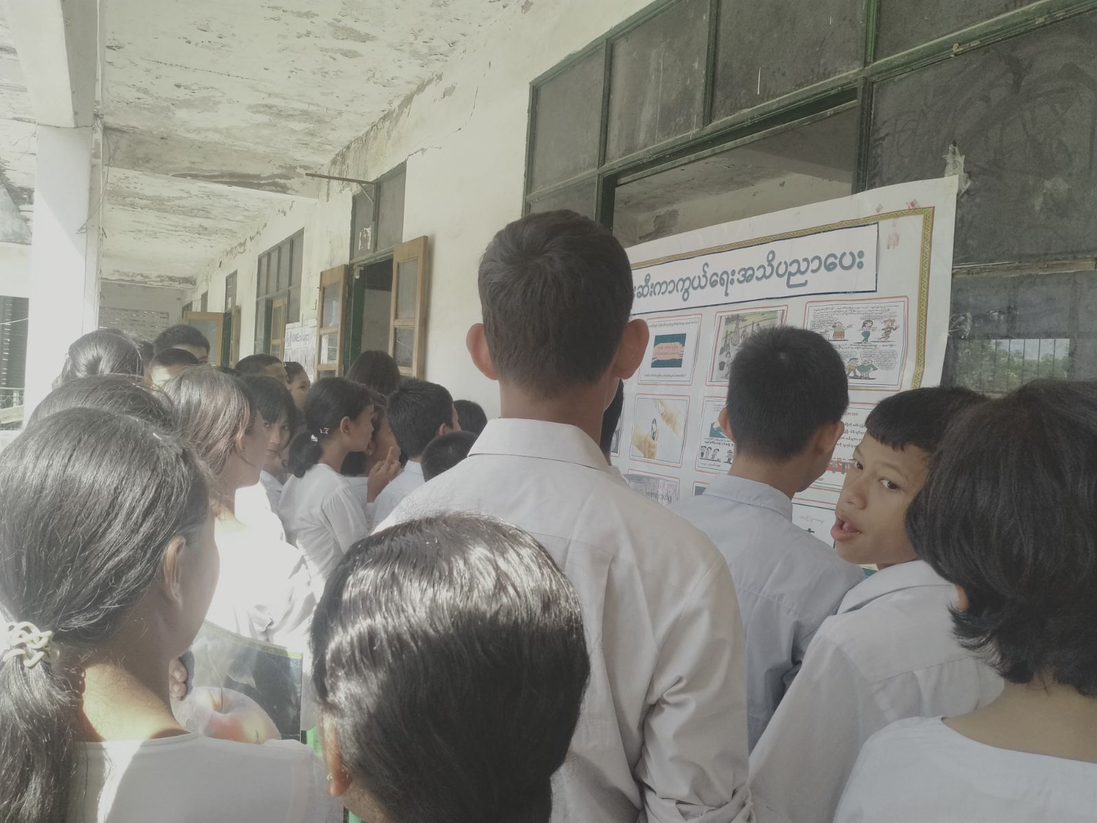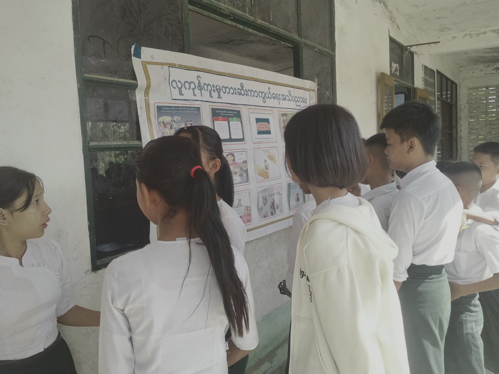 ဆက်လက်ပြီး ကျောင်းသား၊ ကျောင်းသူများကို အသိပညာပေး လက်ကမ်းစာစောင်များ ဖြန့်ဝေခဲ့ကာ ပြသထားသည့် အသိပညာပေးနံရံကပ်စာစောင်များအား ကျောင်းသား၊ ကျောင်းသူများက လေ့လာကြည့်ရှုခဲ့ကြကြောင်း သိရှိရသည်။