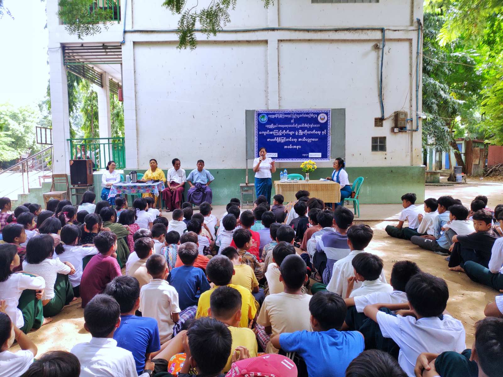 ထို့နောက် မြို့နယ်စာရေးဆရာအသင်းက ကျောင်းစာကြည့်တိုက်အတွက် စာအုပ်စာစောင်များ ပေးအပ်လှူဒါန်းကြရာ ကျောင်းအုပ်ကြီး ဦးသိန်းထွန်းမြင့်က ကျေးဇူးတင်စကား ပြန်လည်ပြောကြားပြီး လူကုန်ကူးမှုတားဆီးကာကွယ်ရေးနှင့် သဘာဝဘေးအန္တရာယ်ဆိုင်ရာ အသိပညာပေးနံရံကပ်စာစောင်များ ပြသဆောင်ရွက်ကြရာ ကျောင်းသား ကျောင်းသူများက စိတ်ပါဝင်စားစွာ လေ့လာဖတ်ရှုခဲ့ကြကြောင်း သိရသည်။