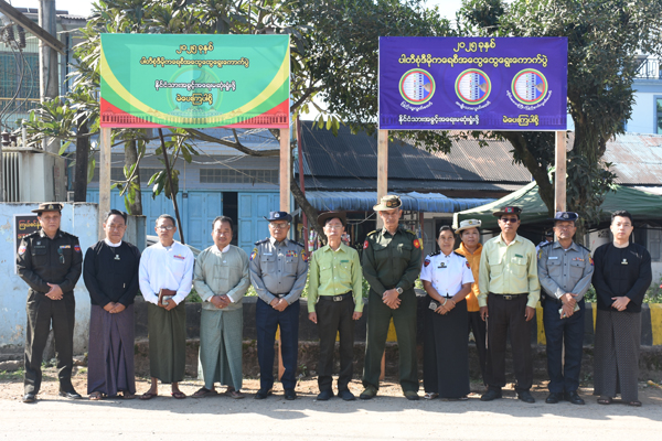 အဆိုပါ အခမ်းအနားသို့ ခရိုင်စီမံခန့်ခွဲရေးနှင့်အုပ်ချုပ်ရေးကော်မတီဥက္ကဋ္ဌ ခရိုင်အုပ်ချုပ်ရေးမှူး ဦးကိုကိုဦး၊ အတွင်းရေးမှူး ဒုတိယရဲမှူးကြီးမြင့်အောင်၊မြို့နယ်စီမံခန့်ခွဲရေးနှင့်အုပ်ချုပ်ရေးကော်မတီဥက္ကဋ္ဌ မြို့နယ်အုပ်ချုပ်ရေးမှူး ဦးချန်မျိုးထွန်း၊ အတွင်းရေးမှူး မြို့နယ်ရဲတပ်ဖွဲ့မှူး ရဲမှူးမြင့်စိုးနှင့် တာဝန်ရှိသူများ၊ ခရိုင်နှင့်မြို့နယ်တို့မှ ဌာနဆိုင်ရာ အကြီးအကဲများက မြေစိုက်ပိုစတာအား စိုက်ထူပေးကာ စုပေါင်းမှတ်တမ်းတင်ဓာတ်ပုံ ရိုင်ကူးခဲ့ကြောင်းနှင့် မြေစိုက်ပိုစတာများအား လူစည်ကားရာနေရာနှင့် လမ်းဆုံနေရာတို့တွင် စိုက်ထူပေးထားကြောင်း သိရသည်။