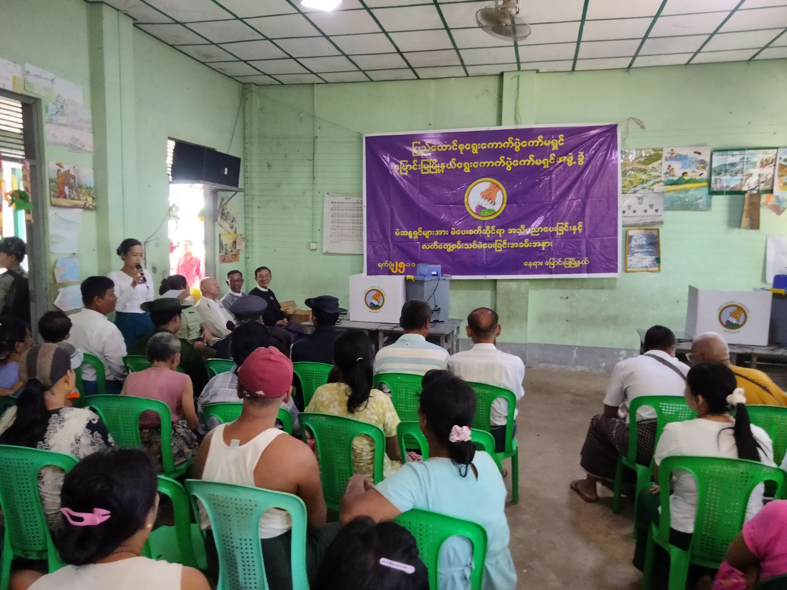 ဧရာဝတီတိုင်းဒေသကြီး၊ မြောင်းမြခရိုင်၊ မြောင်းမြမြို့နယ်စီမံခန့်ခွဲရေးနှင့် အုပ်ချုပ်ရေးကော်မတီ၏ကြီးကြပ်မှုဖြင့် မြို့နယ်ရွေးကောက်ပွဲကော်မရှင်အဖွဲ့ခွဲနှင့် တာဝန်ကျဌာနဆိုင်ရာများ ပူးပေါင်း၍ ၂၀၂၅ ခုနှစ် ပါတီစုံဒီမိုကရေစီအထွေထွေရွေးကောက်ပွဲတွင် ဆန္ဒမဲပေးကြမည့် မဲဆန္ဒရှင်ပြည်သူများအနေဖြင့် မြန်မာအီလက်ထရောနစ်မဲပေးစက်ဖြင့် လွယ်ကူစွာ ဆန္ဒမဲပေးတတ်စေရန်ရည်ရွယ်၍ မြန်မာအီလက်ထရောနစ် (MEVM) မဲပေးစက်အကြောင်းအသိပညာပေးခြင်းနှင့် လက်တွေ့စမ်းသပ်မဲပေးမှုသရုပ်ပြသခြင်းကို ယနေ့ နံနက်( ၁၁ ) နာရီက အမှတ် ( ၉) ရပ်ကွက်၌ ပြုလုပ်ခဲ့သည်။