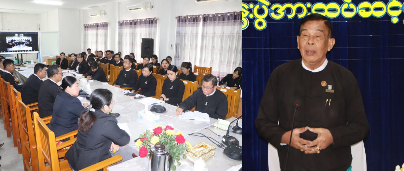 ဥပဒေရေးရာဝန်ကြီးဌာန ပြည်ထောင်စုဝန်ကြီးနှင့် ပြည်ထောင်စုရှေ့နေချုပ်၊ တိုင်းဒေသကြီး/ ပြည်နယ်ဥပဒေချုပ်များ၊ တိုင်းဒေသကြီး/ပြည်နယ်ဥပဒေအရာရှိများ၏ သတ္တမအကြိမ် လုပ်ငန်းညှိနှိုင်းဆွေးနွေးပွဲအား ထပ်ဆင့်ရှင်းလင်းခြင်းအခမ်းအနားကို အောက်တိုဘာ ၂၅ ရက်က မွန်ပြည်နယ်ဥပဒေချုပ်ရုံး အစည်းအဝေးခန်းမ၌ ကျင်းပသည်။