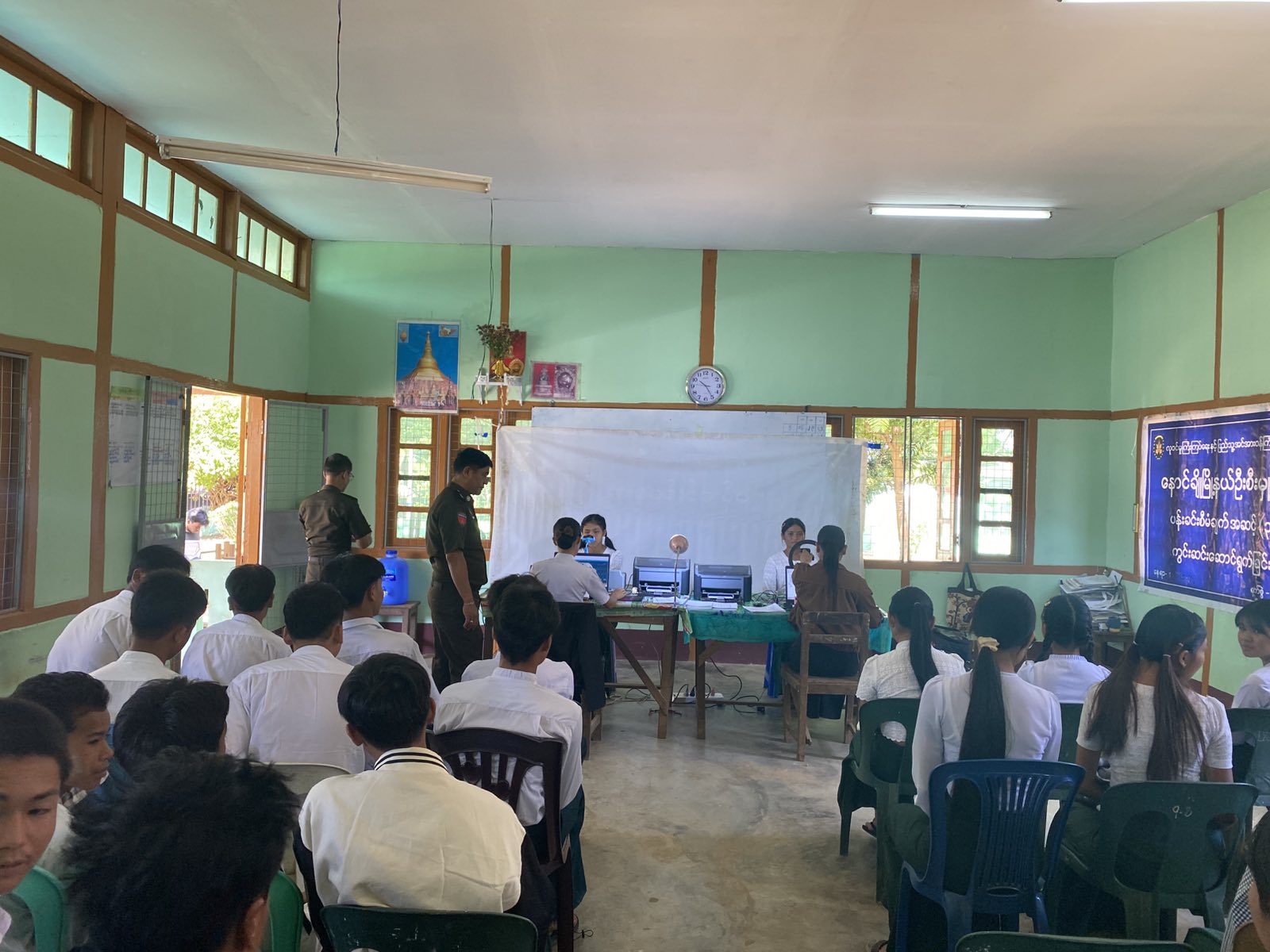 လူဝင်မှုကြီးကြပ်ရေးနှင့်ပြည်သူ့အင်အားဝန်ကြီးဌာန နောင်ချိုမြို့နယ်ဦးစီးမှူးရုံးမှ ပန်းခင်းစီမံချက် အဆင့်-၃ ဖြင့် အောက်တိုဘာ ၂၅ရက်က အထက(၁) ၌ ဇီဝအချက်အလက်များကောက်ယူ၍ e-ID ကတ်များ ဆောင်ရွက်သည်။