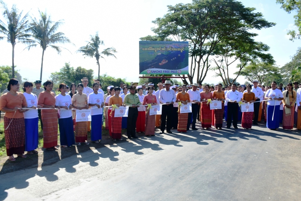 ကျန်းမာရေးဝန်ကြီးဌာန ပြည်သူ့ကျန်းမာရေးနှင့်ကုသရေးဦးစီးဌာနမှ ဆောင်ရွက်သည့် ဆေးလိပ်ငွေ့ကင်းစင် အင်းလေတခွင် မြေစိုက်ပိုစတာစိုက်ထူပွဲကို ယနေ့နံနက် ၉ နာရီက ညောင်ရွှေမြို့နယ် တိလောကျေးရွာအုပ်စု ရွှေရန်ပြေကျေးရွာအနီးရှိ ညောင်ရွှေ- ရွှေညောင် ကားလမ်းမ၌ပြုလုပ်ခဲ့ကြောင်း သိရသည်။