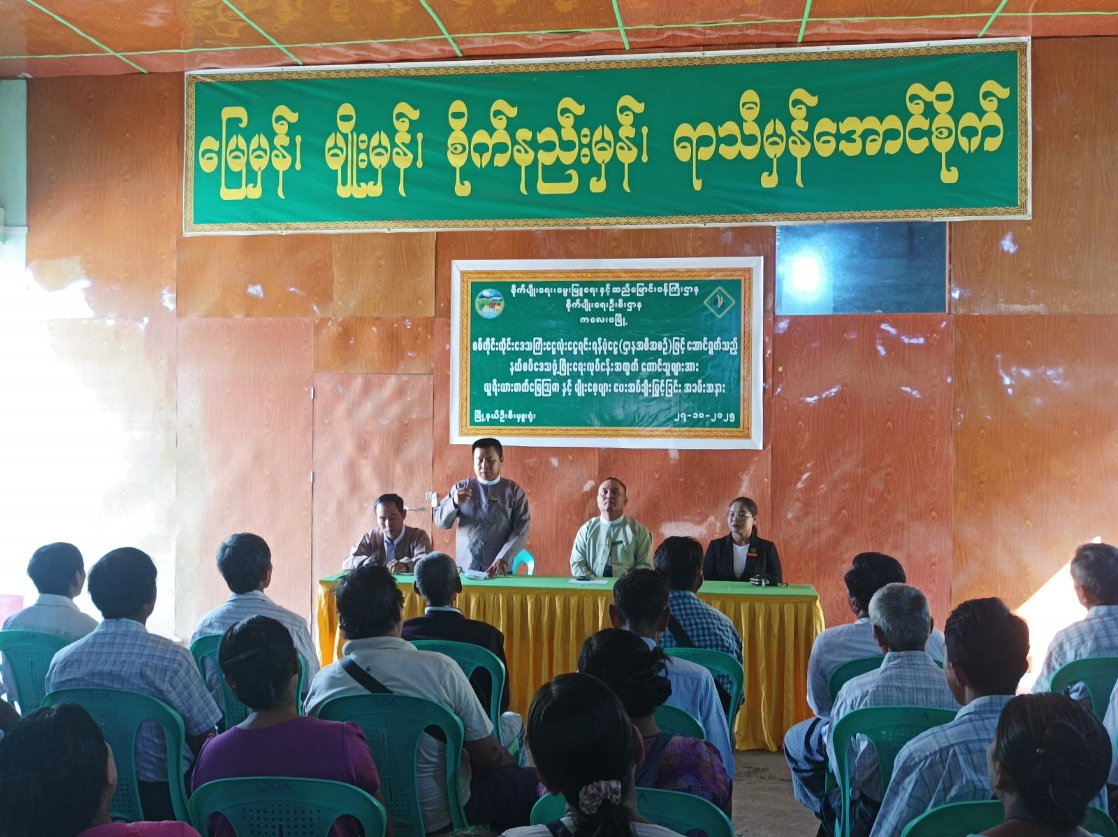 ထိုနောက် မြို့နယ်အဆင့်ဌာနဆိုင်ရာအကြီးအကဲများက တောင်သူများအား ယူရီးယားဓာတ်မြေသြဇာနှင့် မျိုးစေ့များကိုပေးအပ်ခဲ့သည်။ အခမ်းအနားသို့ မြို့နယ်စီမံခန့်ခွဲရေးနှင့်အုပ်ချုပ်ရေးကော်မတီဥက္ကဋ္ဌနှင့် အဖွဲ့ဝင်များ၊ မြို့နယ်အဆင့်ဌာနဆိုင်ရာအကြီးအကဲများ၊ ဒေသခံတောင်သူများ စုစုပေါင်း ၅၀ ဦးခန့် တက်ရောက်ခဲ့ကြောင်း သိရသည်။
