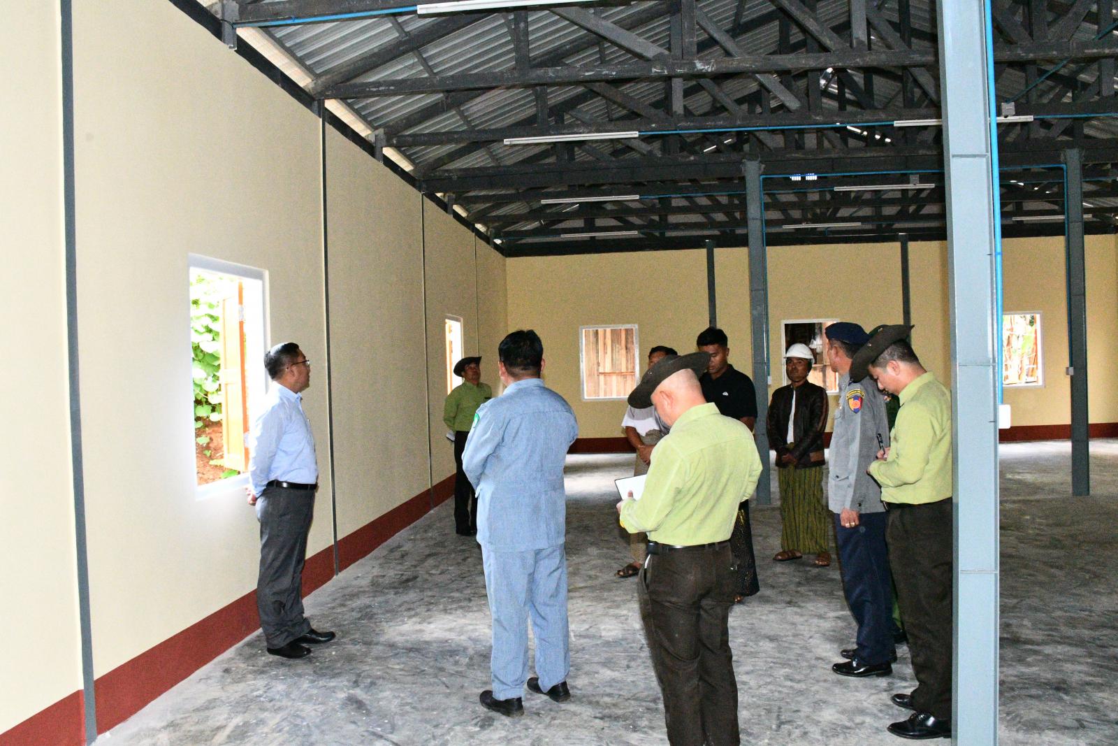 ဆက်လက်၍ လွိုင်ကော်မြို့နယ်ခန်းမဝင်းအတွင်း (၆၀x၃၅)ပေ အုပ်ညှပ်တစ်ထပ်ပစ္စည်း ဂိုထောင်ရုံ ဆောက်လုပ်ပြီးစီးမှုအခြေအနေကို ကြည့်ရှုစစ်ဆေးခဲ့ပြီး ဂိုထောင်အတွင်း ပစ္စည်းများ စနစ်တကျထားသိုရန်နှင့် မီးဘေးအန္တရာယ်လုံခြုံမှုရှိစေရေး စနစ်တကျဆောင်ရွက်ထားရှိရန် မှာကြား ခဲ့သည်။