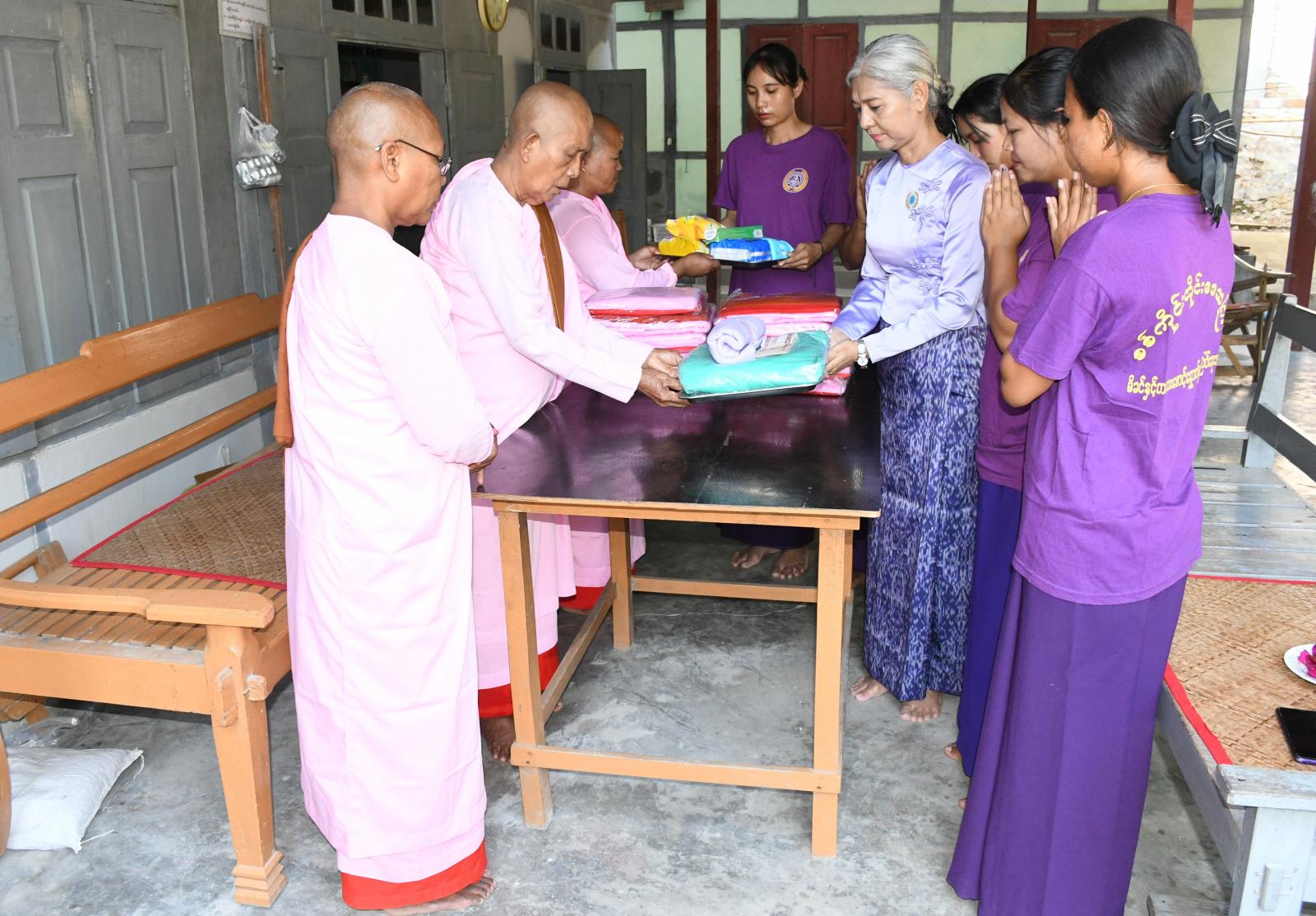 စစ်ကိုင်းတိုင်း ဒေသကြီး အမျိုးသမီးရေးရာအဖွဲ့နှင့် မိခင်နှင့်ကလေးစောင့်ရှောက်မှုကြီးကြပ်ရေးအဖွဲ့ဥက္ကဋ္ဌ ဒေါ်သီသီစိုးနှင့် အဖွဲ့ဝင်များက စစ်ကိုင်းမြို့ပေါ်ရှိ ခေမာရံသီသီလရှင်ကျောင်း၊ အောင်မြင့်မိုရ်မှန်ချိုသီလရှင်ကျောင်း၊ ပညာမဏ္ဍိုင်သီလရှင်ကျောင်း၊ ရတနာသိင်္ဂီမှန်ချိုသီလရှင်ကျောင်း၊ သာသနာ့မဏ္ဍိုင်သီလရှင်ကျောင်းများသို့ သွားရောက်၍ သီလရှင်ဝတ်စုံများနှင့် အသုံးအဆောင်ပစ္စည်းများကို လှူဒါန်းခဲ့ကြောင်းသိရသည်။