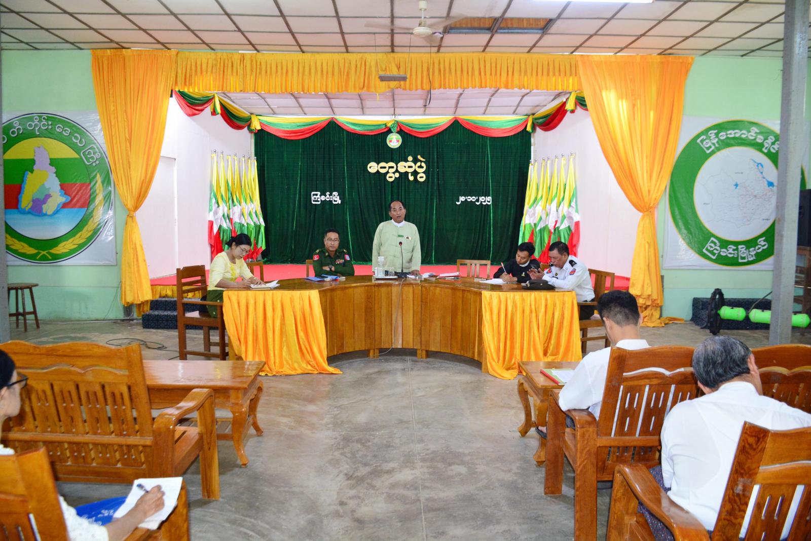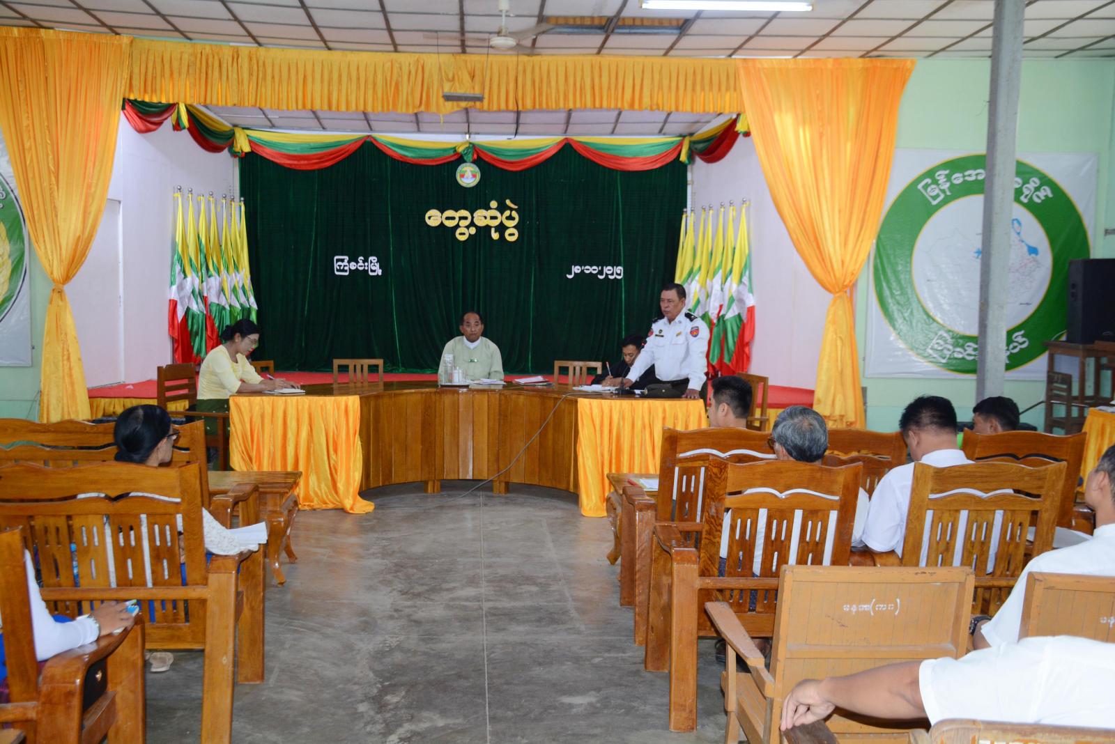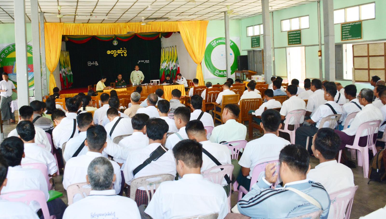 ရှေးဦးစွာ မြို့နယ်စီမံခန့်ခွဲရေးနှင့် အုပ်ချုပ်ရေးကော်မတီဥက္ကဋ္ဌ ဦးဝင်းလှိုင်က အဖွင့်အမှာစကားပြောကြားရာတွင် ဒီဇင်ဘာလတွင်ကျင်းပပြုလုပ်မည့်ဖြစ်သဖြင့် ပါတီစုံဒီမိုကရေစီ အထွေထွေ ရွေးကောက်ပွဲတွင် ဝန်ထမ်းအားလုံးနှင့် မိသားစုဝင်များ၏ အမည်စာရင်းများ ကျန်ရှိမှုမဖြစ်ပေါ်စေရေး ဌာနအကြီးအကဲများက ကြီးကြပ်ပေးသွားရမှာဖြစ်ကြောင်း၊ မိုးစပါးရိတ်သိမ်းပြီး ဆောင်းသီးနှံများ စိုက်ပျိုးရာတွင် နေကြာ၊ ပဲပုပ်ထည့်သွင်းစိုက်ပျိုးကြစေလိုကြောင်း၊ ဆီထွက်သီးနှံများ စိုက်ပျိုး ခြင်းဖြင့် ဒေသအတွင်း စားဆီဖူလုံမည်အပြင် မိသားစုဝင်ငွေများ တိုးပွားလာမည်ဖြစ်ကြောင်း ပြောကြားသည်။ ဆက်လက်၍ မြို့နယ်စီမံခန့်ခွဲရေးနှင့် အုပ်ချုပ်ရေးကော်မတီအဖွဲ့ဝင် ဗိုလ်မှူး သောင်းထွဋ်လွင်က သွားလာရေးတွင် လုံခြုံရေး အသိရှိကြရန်နှင့် နယ်မြေလုံခြုံရေးဆိုင်ရာကိစ္စရပ်များကို ပြောကြားခဲ့ပြီး၊ အဖွဲ့ဝင် မြို့နယ်လဝကဦးစီးမှူးရုံးမှ လက်ထောက်ညွှန်ကြားရေးမှူး ဦးဇော်မင်းက အမည်စာရင်းမပါသူများအား ပုံစံ(၃)၊ ပုံစံ(၃-က) တို့ဖြင့် လျှောက်ထားရမည်ဖြစ် ကြောင်း၊ ပထမအကြိမ်အမည်မပါသူများအား ပြင်ဆင်ဆောင်ရွက်ထားရှိအခြေအနေအား ရှင်းလင်း ပြောကြားခဲ့ပြီးနောက် ဌာနဆိုင်ရာများ၊ ရပ်/ကျေးအုပ်ချုပ်ရေးမှူးများနှင့် စာရေးများက အသီးသီး တင်ပြကြရာ မြို့နယ်စီမံခန့်ခွဲရေးနှင့် အုပ်ချုပ်ရေး ကော်မတီဥက္ကဋ္ဌက သုံးသပ်ဆွေးနွေးပေးခဲ့သည်။