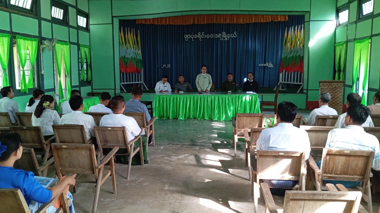 အခမ်းအနားတွင် မြို့နယ်စီမံခန့်ခွဲရေးနှင့်အုပ်ချုပ်ရေးကော်မတီဥက္ကဋ္ဌ ဦးမြသိန်းမောင်က ပြည်ထောင်စုရွေးကော်ပွဲကော်မရှင်အနေဖြင့် နိုင်ငံရေးပါတီများ စုဝေးစည်းရုံး ဟောပြောခွင့်ကို အောက်တိုဘာ (၂၈)ရက်နေ့မှ ဒီဇင်ဘာ (၂၆)ရက်နေ့အထိ ရက်ပေါင်း(၆၀) ခွင့်ပြုထားပြီးဖြစ်ပြီး၊ စုဝေးစည်းရုံးဟောပြောရာတွင်လည်း သတ်မှတ်ပြဌာန်းထားသည့် ဥပဒေ၊ နည်းဥပဒေများနှင့် အညီ စည်းရုံးဟောပြောကြရန် အမှာစကားပြောကြားသည်။ ထို့နောက် မြို့နယ်စီမံခန့်ခွဲရေးနှင့် အုပ်ချုပ်ရေးကော်မတီဝင် ဗိုလ်မှူးမွန်မြတ်သူစိုးနှင့် ရဲမှူးပိုထွန်းတို့က ရွေးကောက်ပွဲ အောင်မြင်စွာ ကျင်းပနိုင်ရေး လုံခြုံရေးဆိုင်ရာ ကိစ္စရပ်များနှင့် လိုအပ်သည်များကို လမ်းညွှန်မှာကြားခဲ့သည်။ ဆက်လက်၍ တွေ့ဆုံပွဲ တက်ရောက်လာကြသည့် နိုင်ငံရေးပါတီများက သိလိုသည်များအား မေးမြန်းဆွေးနွေးရာ တာဝန်ရှိသူများကလည်း ပြန်လည်ရှင်းလင်းဖြေကြားခဲ့ကြကြောင်း သိရသည်။