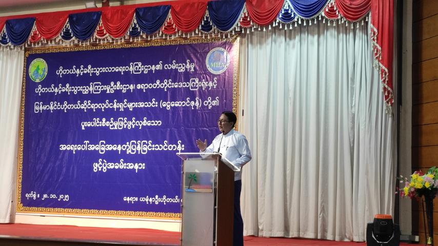 ဧရာဝတီတိုင်းဒေသကြီး ပုသိမ်ခရိုင် ငွေဆောင်မြို့တွင် ဧရာဝတီတိုင်းဒေသကြီး ဟိုတယ်နှင့် ခရီးသွားညွှန်ကြားမှုဦးစီးဌာနရုံးနှင့် မြန်မာနိုင်ငံဆိုင်ရာဟိုတယ်လုပ်ငန်းရှင်များအသင်း(ငွေဆောင်ဇုန်)တို့ပူးပေါင်းဖွင့်လှစ်မည့် ဟိုတယ်ဆိုင်ရာအရေးပေါ်အခြေအနေတုံ့ပြန်ခြင်း သင်တန်းဖွင့်ပွဲအခမ်းအနားအား ယနေ့နံနက် ၁၀ နာရီက ယမုံနာဦးဟိုတယ် Ball Room ခန်းမတွင် ကျင်းပသည်။
