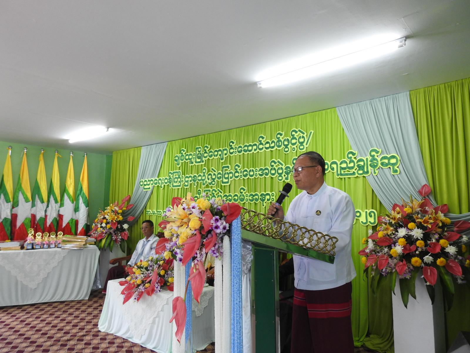 ဦးစွာ ပြည်နယ်သံဃာ့နာယကဥက္ကဋ္ဌ ဘဒ္ဒန္တခေမိသရာလင်္ကာရက ဩဝါဒမြွက်ကြားခဲ့ပြီး ပြည်နယ်လူမှုရေးရာဝန်ကြီး ဦးစောထွန်းအောင်က အမှာစကားပြောကြားသည်။ ထို့နောက် စာသင်ကျောင်းအလှူရှင် နယ်ခြားစောင့်တပ်ကရင်ပြည်နယ်ဗဟိုအကြံပေးနှင့် ကွပ်ကဲရေးအဖွဲ့ အထွေထွေအတွင်းရေးမှူး သီရိပျံချီ ဦးစောချစ်သူက အခြေခံပညာမူလတန်းကျောင်းဆောင်သစ်ဆောက်လုပ်လှူဒါန်းရခြင်း၏ ရည်ရွယ်ချက်ကို ရှင်းလင်းပြောကြားပေးခဲ့ပြီး ကျောင်းဆောင်သစ်ဆိုင်ရာ စာရွက်စာတမ်းများအားလွှဲပြောင်းပေးအပ်ခြင်းနှင့် ပြည်နယ်ပညာရေးမှူးရုံးမှ ညွှန်ကြားရေးမှူး ဦးစသိန်းကျောနှင့် ကွမ်ဘီကျေးရွာအုပ်ချုပ်ရေးမှူး ဦးစောကျော်လင်းတို့က ကျေးဇူးတင်စကား ပြန်လည်ပြောကြားသည်။