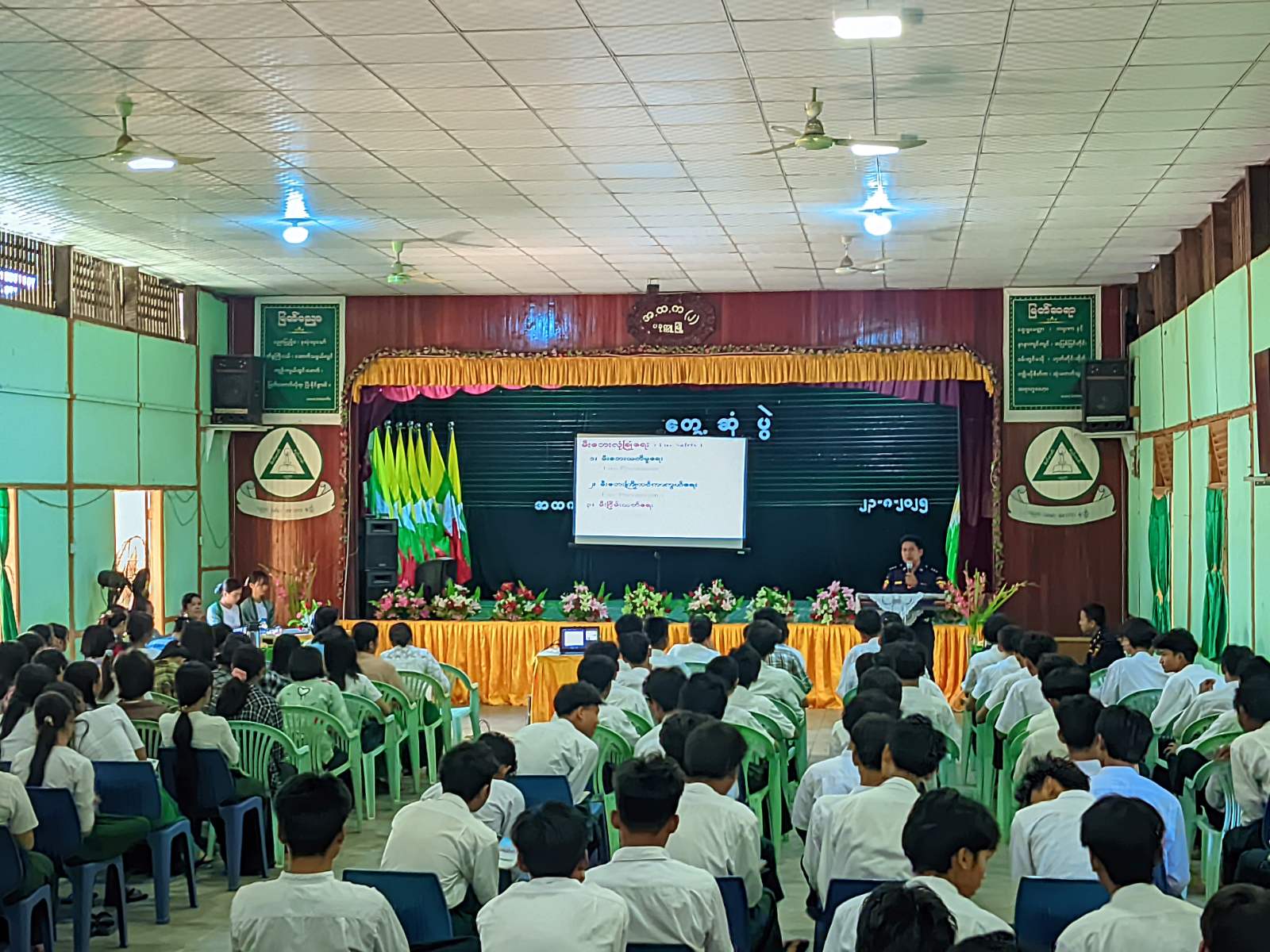 အဆိုပါဟောပြောပွဲတွင် အမှတ်(၂)အခြေခံပညာအထက်တန်းကျောင်းမှ ကျောင်းအုပ်ဆရာမကြီးနှင့်ဆရာ ဆရာမများ၊ ကျောင်းသား ကျောင်းသူများ တက်ရောက်ကြပြီး မီးဘေးအန္တရာယ်ဆိုင်ရာ အသိပညာပေးလက်ကမ်းစာစောင်ဖြန့်ဝေခြင်း၊ အရေးပေါ် မီးငြိမ်းသတ်နည်းများ လက်တွေ့သရုပ်ပြခြင်းများ ဆောင်ရွက်ခဲ့ကြကြောင်း သိရသည်။