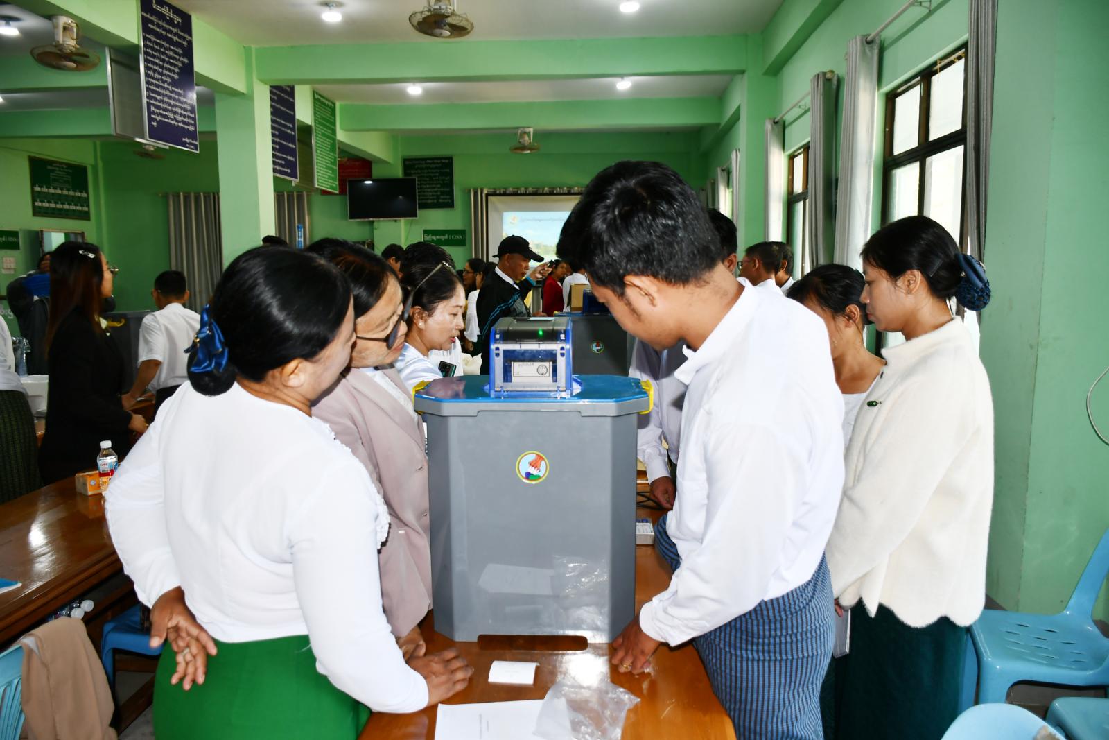 ရှမ်းပြည်နယ်(မြောက်ပိုင်း)၊ မူဆယ်မြို့တွင် ခရိုင်/မြို့နယ်ရွေးကောက်ပွဲကော်မရှင်အဖွဲ့ခွဲမှ မြန်မာ့အီလက်ထရောနစ်မဲပေးစက် (MEVM) Installation ပြုလုပ်ခြင်းသင်တန်းကို ယနေ့နံနက် (၀၉း၃၀)နာရီအချိန်က မူဆယ်မြို့၊ အထွေထွေအုပ်ချုပ်ရေးဦးစီးဌာန၊ စုပေါင်းရုံးခန်းမတွင် ဆောင်ရွက်ခဲ့ကြောင်း သိရသည်။
