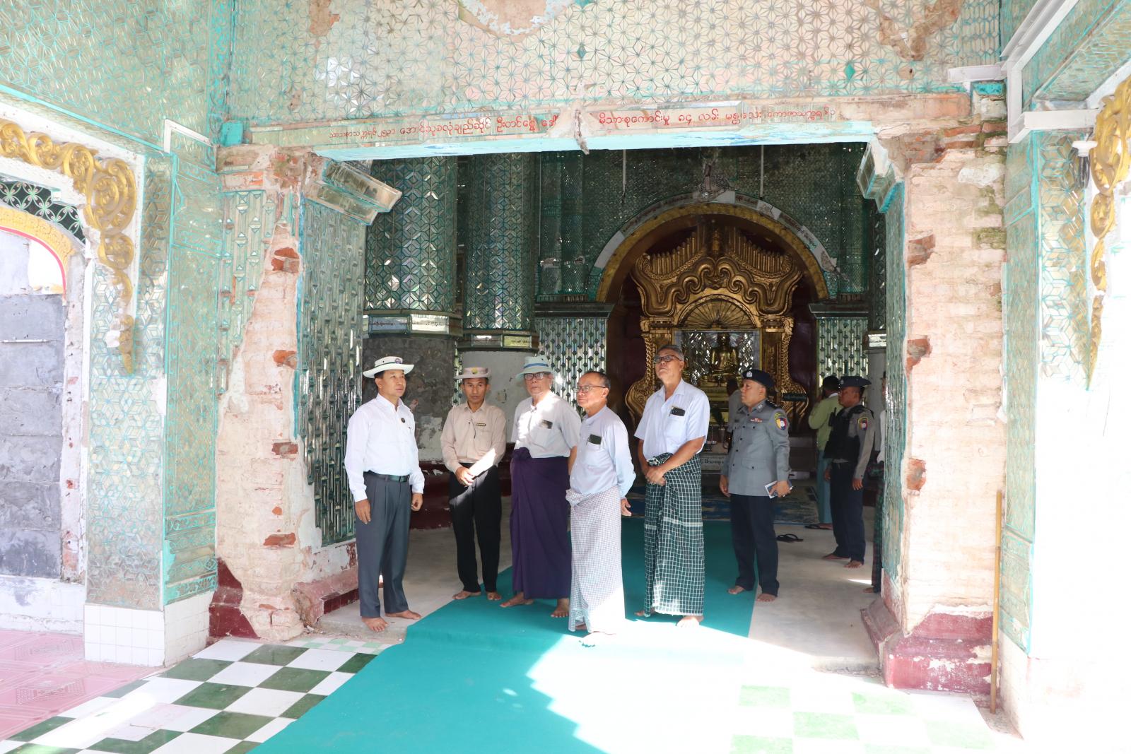 ယင်းနောက် တိုင်းဒေသကြီး ဝန်ကြီးချုပ်နှင့်တာဝန်ရှိသူများသည် ငလျင်လှုပ်ခတ်မှုကြောင့် ထိခိုက်ပျက်စီးခဲ့သည့် စစ်ကိုင်းမြို့ ဉာဏ်တော် ၁၀၈ ပေရှိ “မဟိယင်္ဂဏ” စေတီတော်မြတ်ကြီးပြန်လည်ပြုပြင်မွမ်းမံနေမှု၊ စေတီတော်ကြီးအတက်လမ်းပြုပြင်နေမှုများနှင့်ဉာဏ်တော် ၅၄ ပေရှိ “စေတီလှ” စေတီတော်မြတ်ကြီးများ အသစ်ပြန်လည်မွမ်းမံတည်ဆောက်နေမှုများအားလိုက်လံကြည့်ရှုခဲ့ကြပြီး လိုအပ်သည်များကို တာဝန်ရှိသူများနှင့်ပေါင်းစပ်ဆောင်ရွက်ပေးသည်။