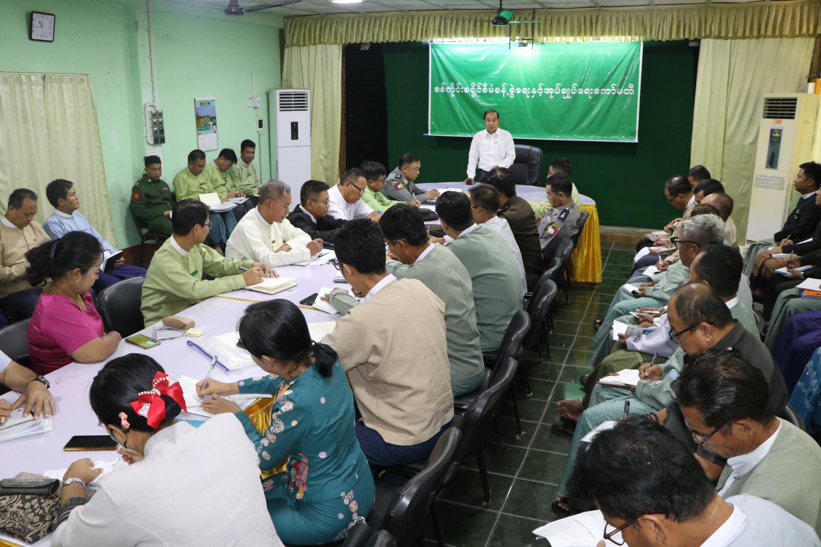 ဦးစွာ တိုင်းဒေသကြီးဝန်ကြီးချုပ်ဦးမြတ်ကျော်က စစ်ကိုင်းခရိုင်အတွင်းရှိ မြို့နယ်များ၌ ဒေသဖွံ့ဖြိုးရေးလုပ်ငန်းများအတွက် အကောင်အထည်ဖော်ဆောင်ရွက်လျက်ရှိသည့် တည်ဆောက်ရေးလုပ်ငန်းများအားလုံး သတ်မှတ်ဘဏ္ဍာနှစ်အတွင်းစံချိန်စံညွှန်းမီအရည်အသွေးကောင်းမွန်စွာဖြင့်တည်ဆောက်ပြီးစီးရေး၊ ဌာနဆိုင်ရာများအနေဖြင့် ဘဏ္ဍာနှစ်အလိုက်ရရှိထားသည့် ဘဏ္ဍာငွေများအားအလေအလွင့်မရှိအောင် စနစ်တကျသုံးစွဲသွားရေး၊ ဒေသခံပြည်သူများစားရေရိက္ခာဖူလုံစေရေးအတွက် ခရိုင်အတွင်းဆီထွက် သီးနှံများတိုးချဲ့စိုက်ပျိုးရေးနှင့်စိုက်ပျိုးပြီးသည့်အဓိကသီးနှံများ ပန်းတိုင်အထွက်နှုန်းရရှိရေးတို့အတွက် အလေးထားဆောင်ရွက်သွာကြရန်နှင့် မကြာမီကျင်းပတော့မည့် ပါတီစုံဒီမိုကရေစီအထွေထွေရွေးကောက်ပွဲကြီး အောင်မြင်စွာကျင်းပနိုင်ရေးအတွက် တာဝန်ရှိသူအားလုံးအနေဖြင့် မဲဆန္ဒရှင်စာရင်းများကျန်ရှိမှုမရှိစေရေးနှင့် မဲစာရင်းများမှန်ကန်စေရန်အတွက် သက်ဆိုင်ရာအထွေထွေအုပ်ချုပ်ရေးဦးစီးဌာန၊ လူဝင်မှုကြီးကြပ်ရေးနှင့်ပြည်သူ့အင်အားဝန်ကြီးဌာနနှင့်ကော်မရှင်အဖွဲ့များသာမကတာဝန်ရှိသူအားလုံးမှ ဝိုင်းဝန်းပူးပေါင်းဆောင်ရွက်သွားကြရန်လိုအပ်ပါကြောင်းပြောကြားသည်။