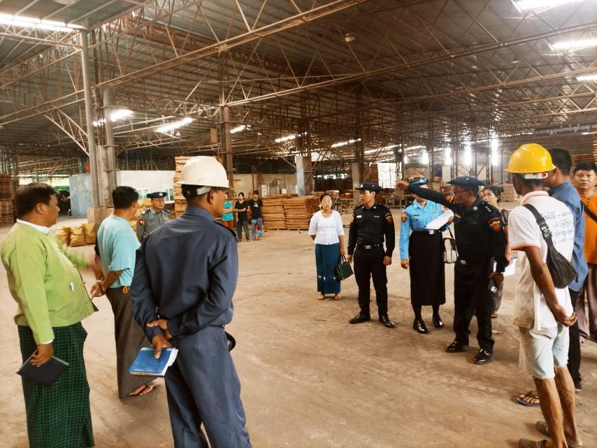 မွန်ပြည်နယ်၊ သံဖြူဇရပ်မြို့နယ်ရှိ စက်ရုံအလုပ်ရုံများ မီးဘေးလုံခြုံရေးအတွက် ဆောင်ရွက်လျက်ရှိရာ အောက်တိုဘာ ၂၉ ရက် နံနက်ပိုင်းက မော်လမြိုင်-ရေး ကားလမ်းပေါ်ရှိ ဝဲကလိကျေးရွာ မြန်မာ့စိန်လင်းသစ်ခွဲသားစက်ရုံအား သွားရောက်စစ်ဆေးသည်။