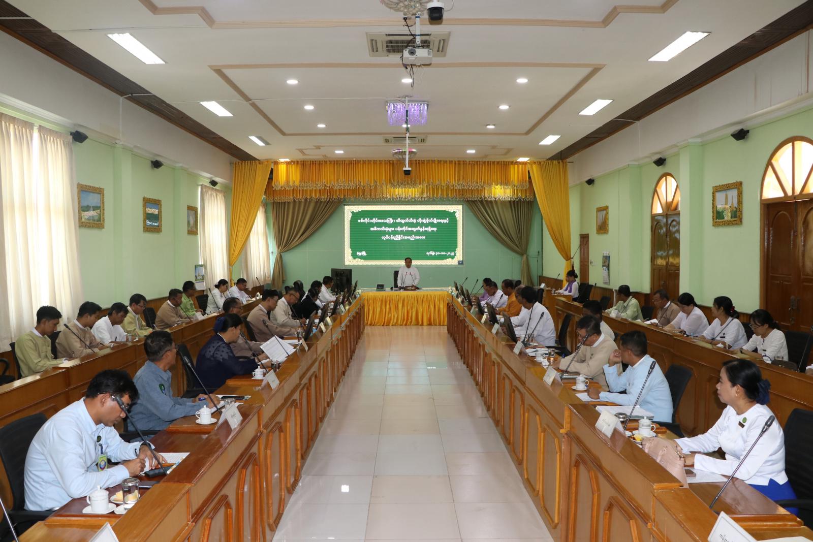 ဦးစွာ တိုင်းဒေသကြီး ဝန်ကြီးချုပ် ဦးမြတ်ကျော်က အမျိုးသားကာကွယ်ရေးနှင့် လုံခြုံရေးကောင်စီ၏ “နိုင်ငံတော်ရွှေသီးဖို့ ကုန်ထုပ်လုပ်မှုအားပေးစို့”ဆိုသည့် ဆောင်ပုဒ်အတိုင်း မိမိတို့တိုင်းဒေသကြီးအတွင်းရှိ ဆီထွက်သီးနှံများအားတိုးချဲ့စိုက်ပျိုးကာ စိုက်ပျိုးထားသည့် အဓိကသီးနှံများ ပန်းတိုင်အထွက်နှုန်းရရှိရေး အလေးထားဆောင်ရွက်ကြပြီး ကုန်ထုတ်လုပ်မှုများနှင့်စိုက်ပျိုးမွေးမြူရေးလုပ်ငန်းများကို အားပေးဆောင်ရွက်ကာ ကျေးလက်စီးပွားရေးနှင့် နိုင်ငံ့စီးပွားမြှင့်ခြင်းဖြင့် လူမှုစီးပွားဘဝမြှင့်တင်ခြင်းများအတွက် မိမိတို့တိုင်းဒေသကြီး အစိုးရ အဖွဲ့၊ ဌာနဆိုင်ရာများ၊ စီမံခန့်ခွဲရေးနှင့်အုပ်ချုပ်မှုကော်မတီအဖွဲ့များနှင့်ဒေသခံ တောင်သူများမှ ဝိုင်းဝန်းပူးပေါင်းဆောင်ရွက်သွားကြရန် လိုအပ်ပါကြောင်း၊ မိမိတို့တိုင်းဒေသကြီးအတွင်း စားရေရိက္ခာဖူလုံရေး ဆောင်ရွက်ရာတွင် သီးနှံစိုက်စွမ်းအား မြှင့်တင်နိုင်ရေးအတွက် မိုးစပါးတစ်သီးသာစိုက်ပျိုးကြသည့် မြေယာများအပေါ်တွင် ဒေသ၊ ရေ၊ မြေ အခြေအနေအပေါ်မူတည်ပြီး သီးထပ်သီးနှံများ ပြည့်မီကျော်လွန်စွာ စိုက်ပျိုးထုတ်လုပ်သွားကြရန် လိုအပ်ပါကြောင်း၊ မိမိတို့တိုင်းဒေသကြီးသည် စိုက်ပျိုးရေးအား အဓိကအားပြု လုပ်ကိုင်ဆောင်ရွက်နေသည့် တိုင်းဒေသကြီးတစ်ခုဖြစ်တာနှင့်အညီ နှစ်စဉ်စိုက်ပျိုးလျက်ရှိသည့် စပါး၊ ဆီထွက် သီးနှံနှင့် ဝါသီးနှံအပါအဝင် သီးနှံမျိုးစုံ စိုက်ဧကလျာထားချက်ပြည့်မီရေး၊ တိုးချဲ့စိုက်ရေးနှင့် ပန်းတိုင်အထွက်နှုန်းရရှိရေး၊ ကိန်းဂဏန်းအချက်အလက်များ မှန်ကန်စေရေးတို့အတွက် တာဝန်ရှိသူများ အားလုံးမှ ဝိုင်းဝန်းကြိုးပမ်း ဆောင်ရွက်သွားကြရန် လိုအပ်ပါကြောင်း ပြောကြားခဲ့သည်။