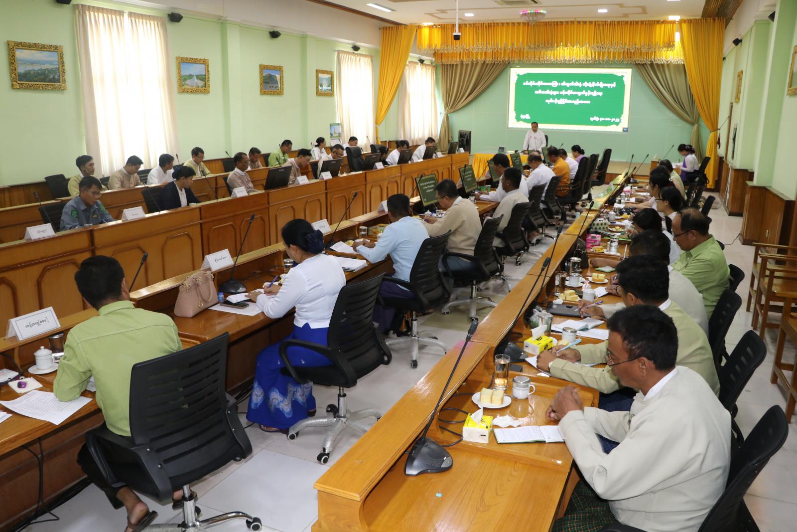 ယင်းနောက် တိုင်းဒေသကြီးအဆင့် ဌာနဆိုင်ရာများက တိုင်းဒေသကြီးအတွင်းရှိ ခရိုင်/မြို့နယ်များတွင် ၂၀၂၅-၂၀၂၆ ခုနှစ်၊ ဆီထွက်သီးနှံများ တိုးချဲ့စိုက်ပျိုးသွားမည့် လုပ်ငန်းအခြေအနေများနှင့် အဓိကသီးနှံများ ပန်းတိုင်အထွက်နှုန်းရရှိရေး လုပ်ငန်းများဆောင်ရွက်ထားရှိမှု အခြေအနေများ၊ စားရေရိက္ခာဖူလုံစေရေးအတွက် အသား/ငါး/ဥကဏ္ဍ ဖွံ့ဖြိုးတိုးတက်ရေး လုပ်ငန်းများ ဆောင်ရွက်နေမှု အခြေအနေများ၊ လယ်ယာမြေများသုံးစွဲစိုက်ပျိုးနေမှု အခြေအနေ များ၊ ဆည်တမံများနှင့် မြစ်ရေတင်လုပ်ငန်းများမှ စိုက်ပျိုးရေဖြန့်ဝေပေးနေမှု အခြေအနေများ၊ လယ်ယာသုံးစက်ကိရိယာများ ထောက်ပံ့ပေးအပ်ထားရှိမှုနှင့် သုံးစွဲနေမှု အခြေအနေများ၊ ဒေသခံတောင်သူများသို့ စိုက်ပျိုးစရိတ်ချေးငွေများ ထုတ်ချေးပေးထားမှု အခြေအနေများအား အသီးသီး ရှင်းလင်းဆွေးနွေး တင်ပြကြသည်။