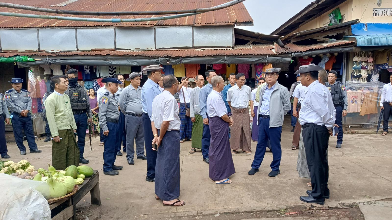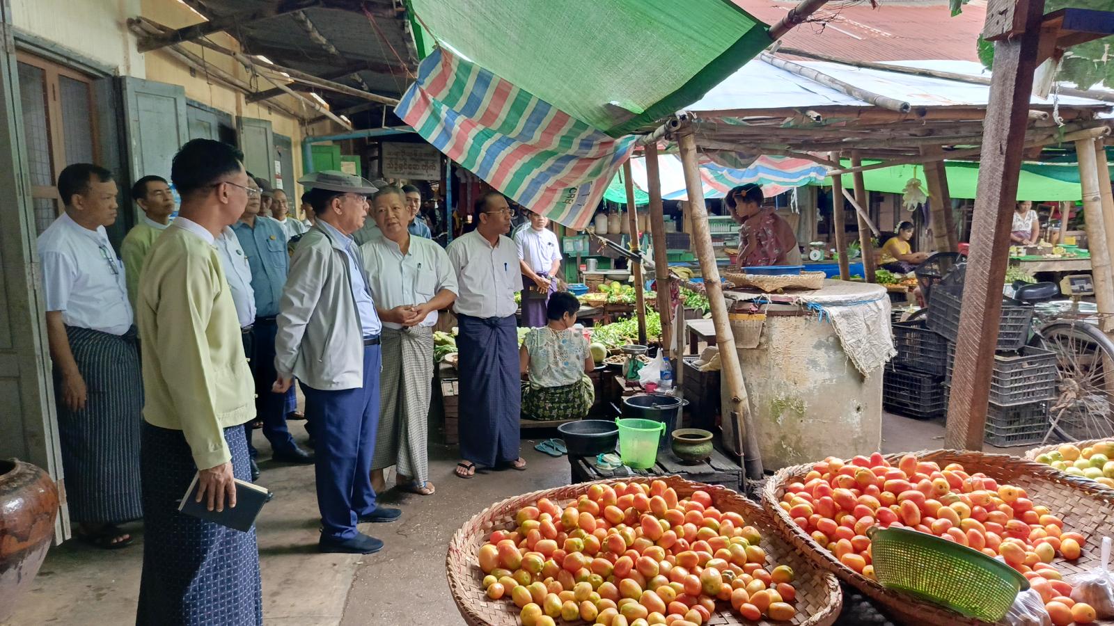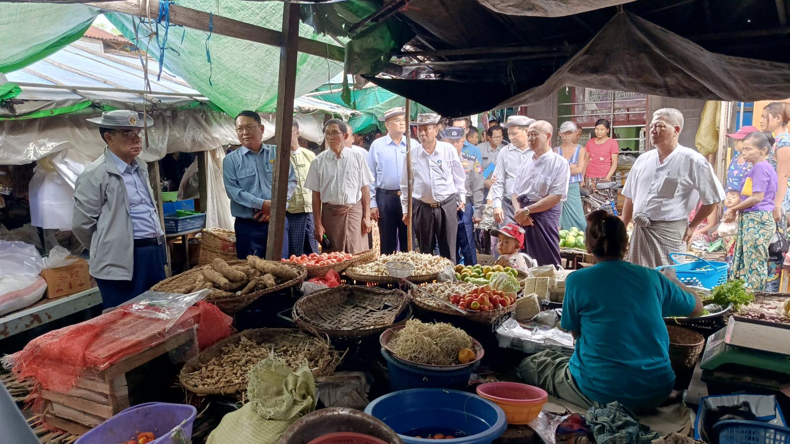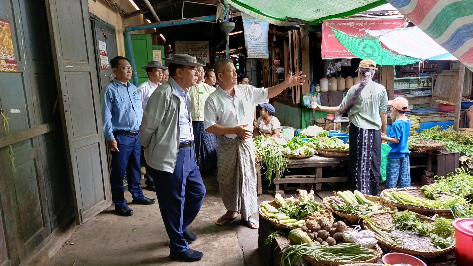 ဝန်ကြီးချုပ်သည် ဈေးအရှေ့ဘက်အပြင်တန်းအမိုးပြုပြင်ရန် လျာထားဆောင်ရွက်ထားရှိမှုနှင့် B-3 ယာယီဈေးရုံ အခြေအနေအားကြည့်ရှုစစ်ဆေးခဲ့ရာ မြို့နယ်စည်ပင်သာယာအမှုဆောင်အရာရှိ၊ ဈေးတာဝန်ခံနှင့်ကော်မတီအဖွဲ့ဝင်များက လိုက်လံရှင်းလင်းပြသခဲ့သည်။ ထို့နောက် ဝန်ကြီးချုပ်သည်ဈေးသည်များနှင့် ရင်းရင်းနှီးနှီးတွေ့ဆုံလိုအပ်ချက်များကို မေးမြန်းပြီး တာဝန်ရှိသူများအားလမ်းညွှန်မှာကြားခဲ့သည်။