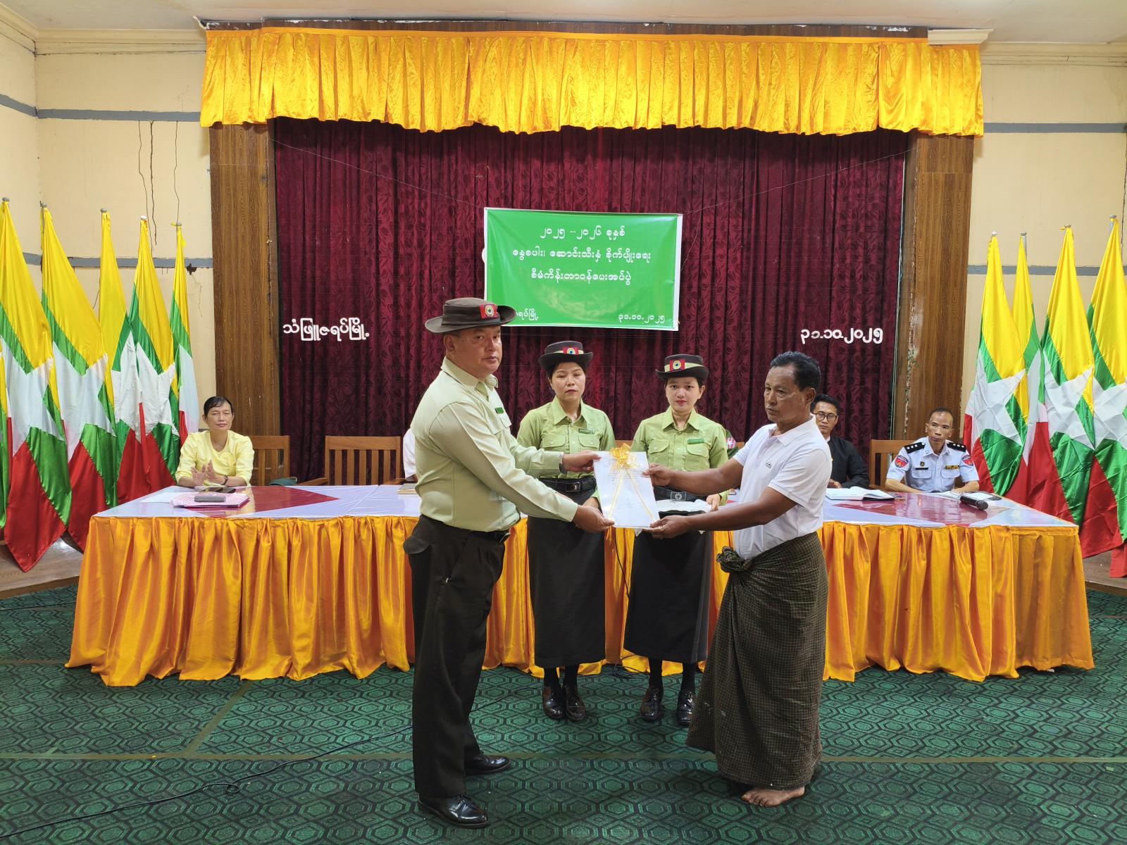 မွန်ပြည်နယ်၊ သံဖြူဇရပ်မြို့နယ်တွင် ၂၀၂၅-၂၀၂၆ ခုနှစ် နွေစပါးနှင့်ဆောင်းသီးနှံ စီမံကိန်းတာဝန်ပေးအပ်ပွဲအခမ်းအနားကို အောက်တိုဘာ ၃၁ ရက်မွန်းလွဲပိုင်းက အထွေထွေအုပ်ချုပ်ရေးဦးစီးဌာန အစည်းအဝေးခန်းမ၌ ကျင်းပပြုလုပ်ခဲ့သည်။