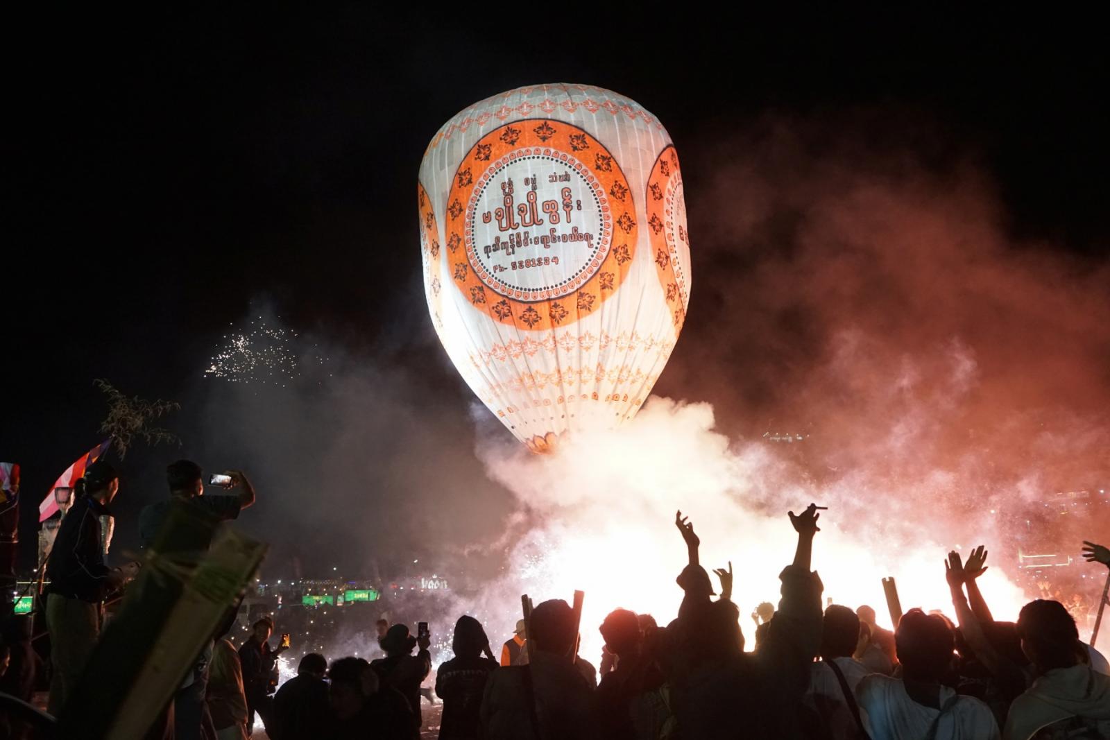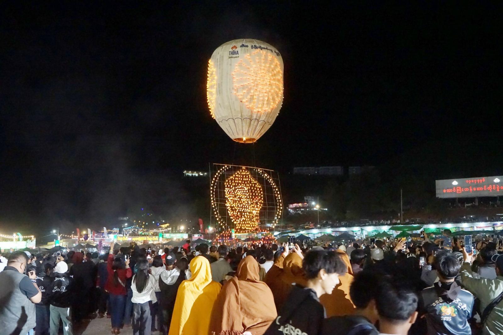 ထိုသို့ကျင်းပရာ အဆိုပါညအဝေရာကွင်းတွင် ညမီးကြီးယမ်းမီး(ခေါ်) ညလွှတ်မီးပုံးပျံ (၆)လုံးနှင့်စိန်နားပန်အလှ မီးပုံးပျံ(၅)လုံး၊ စုစုပေါင်း(၁၁)လုံးတို့ကို ယှဉ်ပြိုင်လွှတ်တင်ခဲ့ကြသည်။