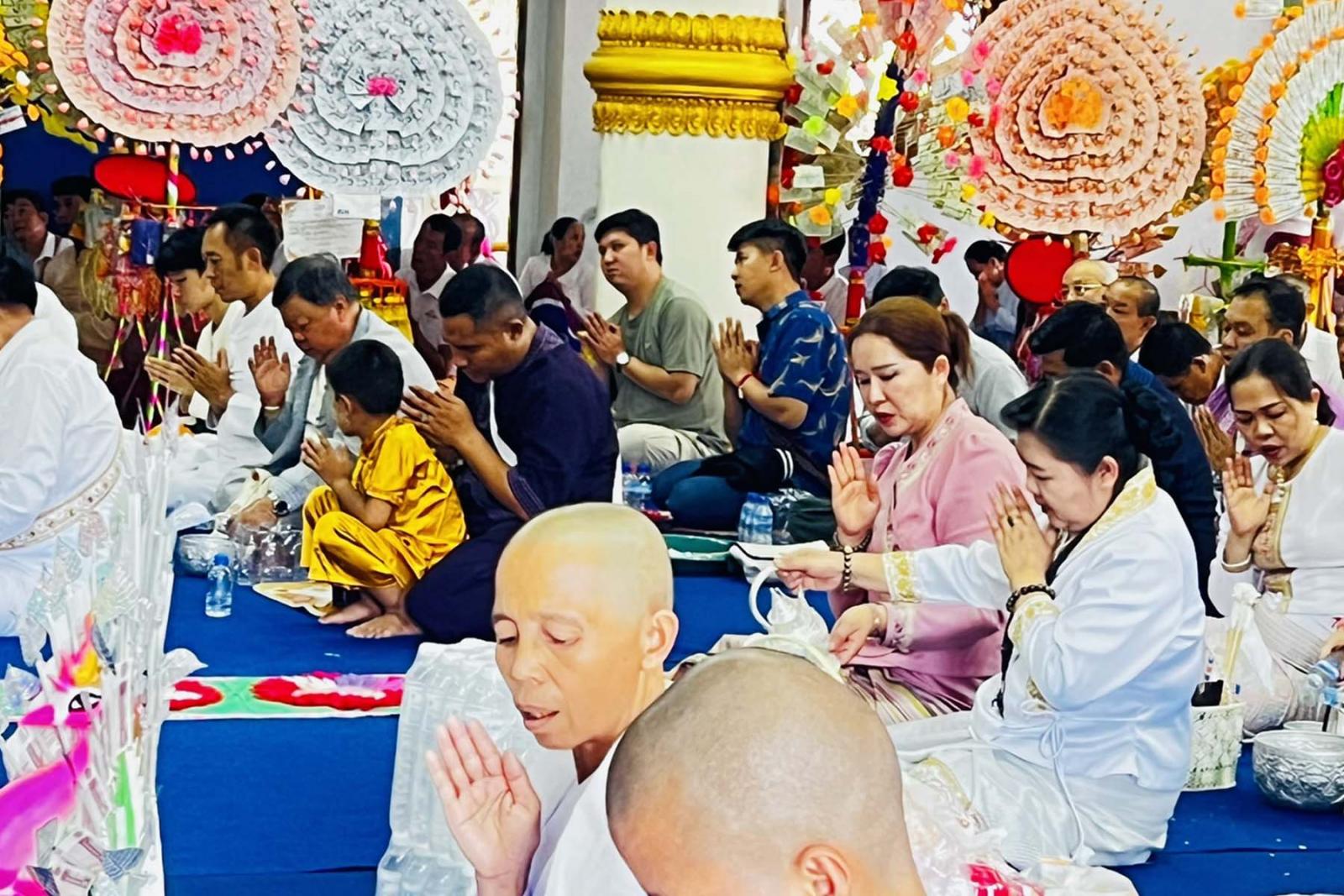 ရှေးဦးစွာ ပင့်သံဃာများအား အာရုံဆွမ်းကပ်လှူပြီး စေတနာရှင်၊ အလှူရှင်များက ပဒေသာပင်များကို ဘုန်းတော်ကြီးကျောင်းတစ်ပတ် လက်ယာရစ်လှည့်လည်ပူဇော်ကြသည်။ ယင်းနောက် ရေစက်ချအခမ်းအနားကို ကျင်းပရာ မြို့နယ်စီမံခန့်ခွဲရေးနှင့်အုပ်ချုပ်ရေးကော်မတီဥက္ကဋ္ဌ ဦးစိုးသက်ဆွေနှင့်အဖွဲ့ဝင်များ၊ စေတနာရှင်၊ အလှူရှင်များက တက်ရောက် ကုသိုလ်ယူကြသည်။
