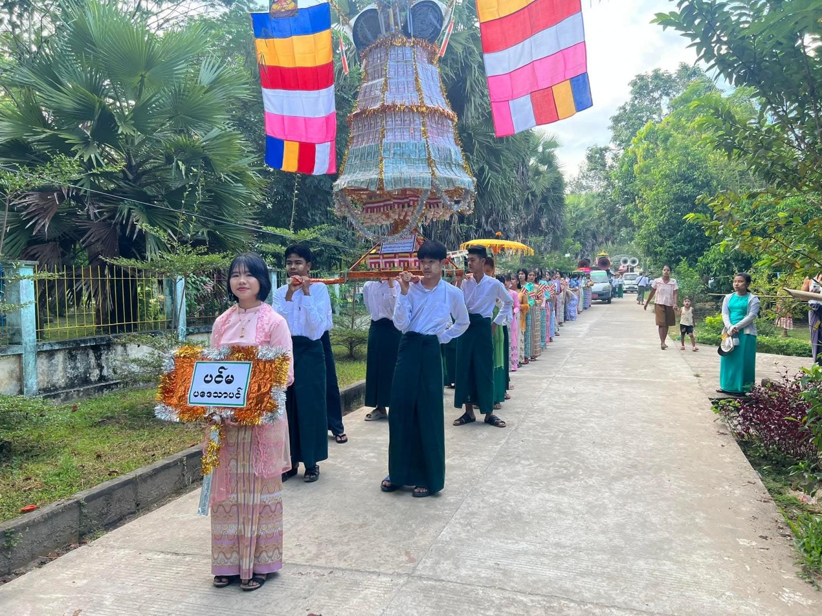 အ.ထ.က ငပုတော ကျောင်းရှေ့မှမှ မဂ္ဂင်လမ်း၊ ယင်းမာလမ်းမှ မေတ္တာလမ်းထိ ပဒေသာပင်များဖြင့် စီတန်းလှည့်လည်ခဲ့ကြသည်။ ယနေ့ အ.ထ.က(၁) Grade 5မှ Grade 12ဆရာ/ဆရာမများ၊ ကျောင်းသား၊ ကျောင်းသူများ၊ ရုံးအဖွဲ့များ၏ စုပေါင်းလှူဒါန်းငွေမှာ ငွေသား (၁၂၀)သိန်းကျော် လှူဒါန်းခဲ့ကြသည်။