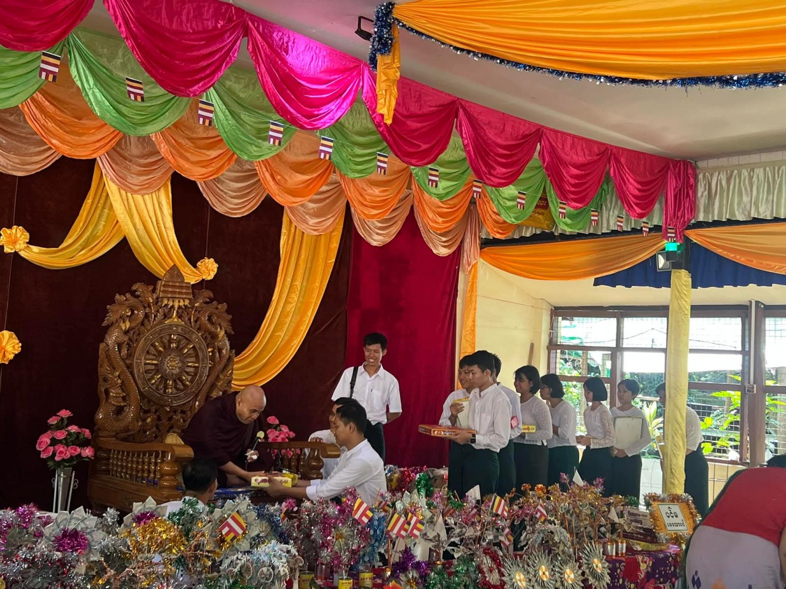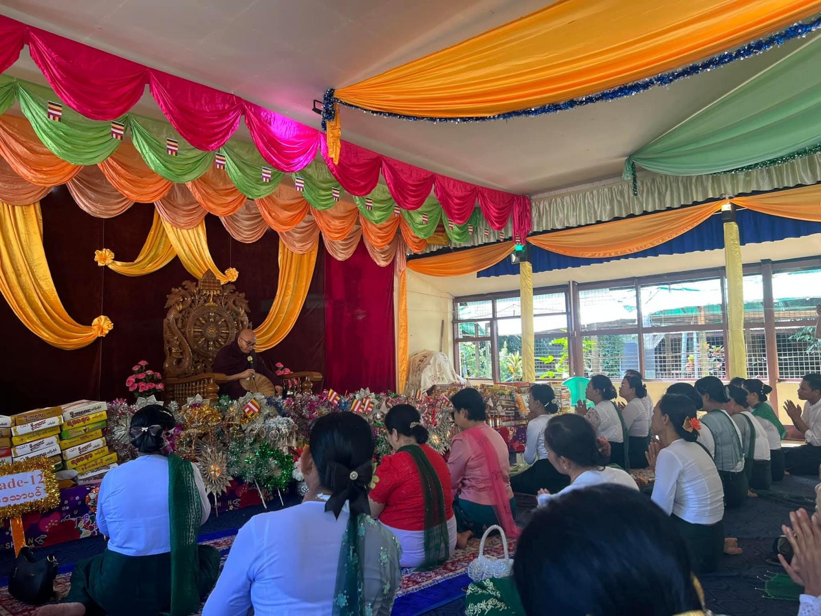 ဆက်လက်ပြီး ရေစက်ချအနုမောဓနာတရားနာကြားခြင်း မင်္ဂလာအခမ်းအနားပြုလုပ်ရာ နမောတဿ သုံးကြိမ်ရွတ်ဆိုဘုရားကန်တော့၍ ဖွင့်လှစ်ပြီး မဲဇလီကျောင်းတိုက်ဆရာတော်ထံမှ ငါးပါးသီလခံယူဆောက်တည်ခဲ့သည်။ ဆရာတော်သံဃာတော်များက ပရိတ်တရားတော်များရွတ်ပွားခဲ့ပြီး၊ကထိန်လျာ”ဉာတ်”သင်္ကန်းအား မြို့နယ်ပညာရေးမှူးနှင့်ကျောင်း အုပ်ဆရာမကြီးတို့က ဆက်ကပ်လှူ ဒါန်းခဲ့သည်။