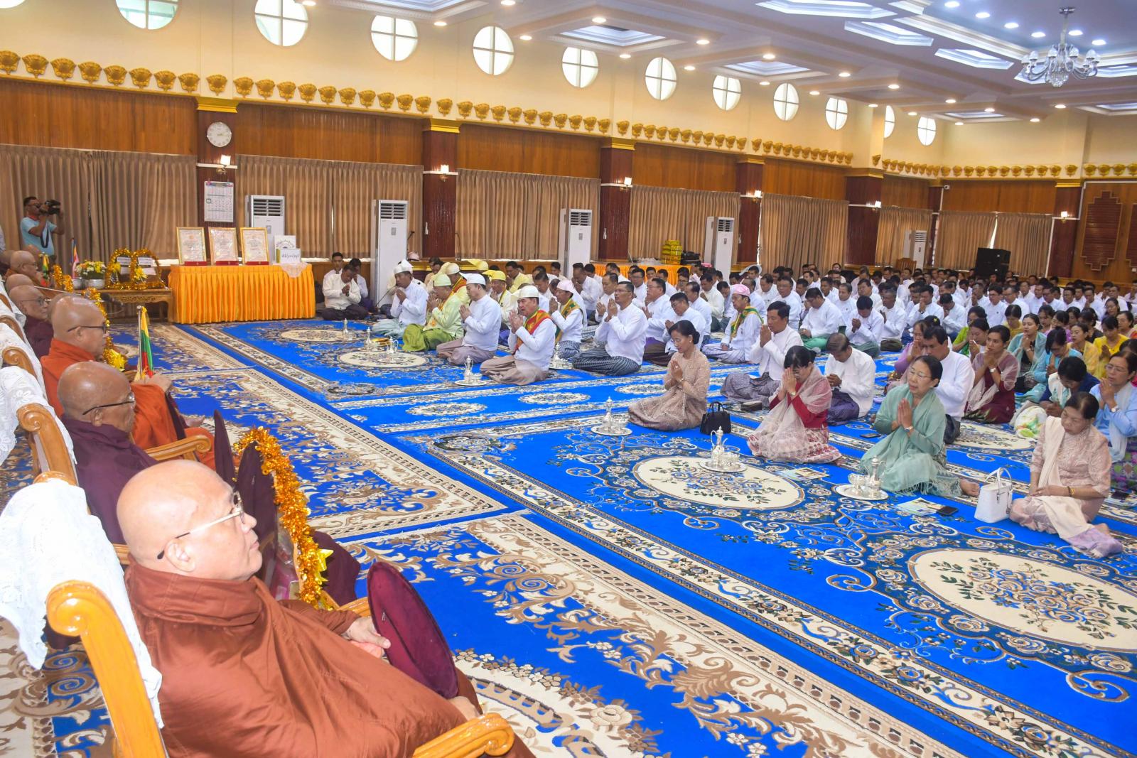 နေ့လယ်ပိုင်းတွင် ရခိုင်ပြည်နယ်ဝန်ကြီးချုပ် ဦးထိန်လင်းသည် ရခိုင်ပြည်နယ်အစိုးရ အဖွဲ့ရုံး အစည်းအဝေးခန်းမ၌ ကျင်းပသော ဗုဒ္ဓဘာသာကလျာဏယုဝအသင်းကြီး (Y.M.B.A) ဗဟိုမှ ရခိုင်ပြည်နယ်အတွင်းရှိ ဆရာတော်ကြီးများအား မင်္ဂလဘွဲ့တံဆိပ်တော်များ ဆက်ကပ်ချီးမြှင့်ပွဲ မဟာမင်္ဂလာ အခမ်းအနားသို့တက်ရောက်သည်။