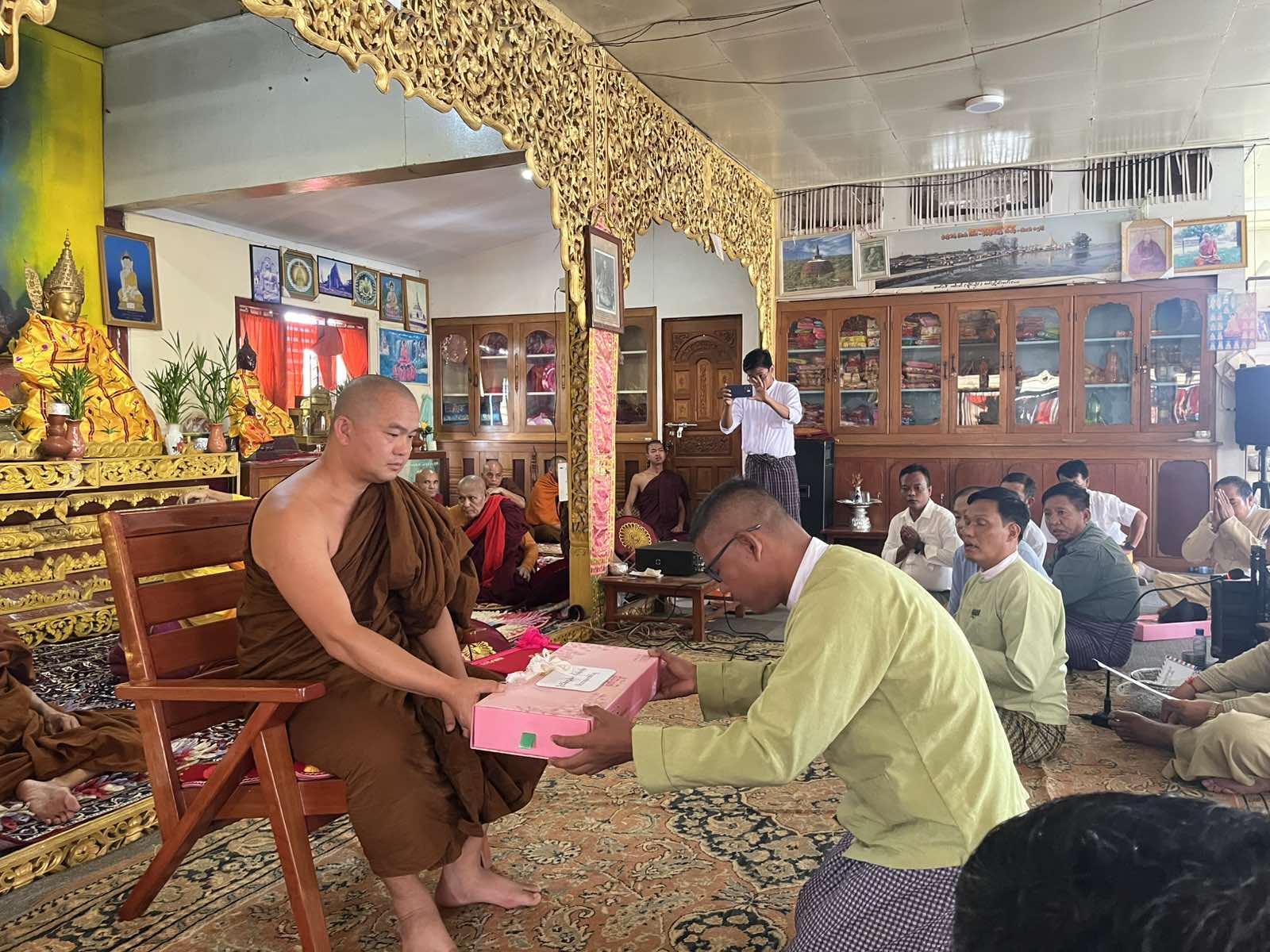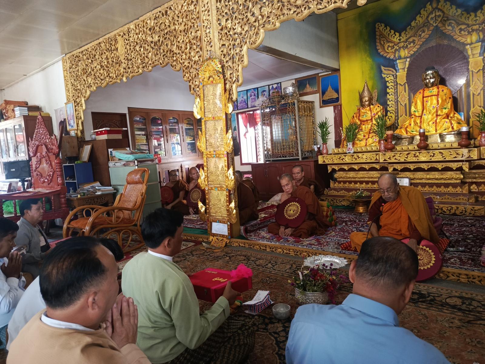 ထို့နောက် မြို့နယ်စီမံခန့်ခွဲရေးနှင့် အုပ်ချုပ်ရေးကော်မတီဥက္ကဋ္ဌ၊ မြို့နယ်အုပ်ချုပ်ရေးမှူး ဦးမောင်တင်ဦးနှင့် မြို့နယ်စီမံခန့်ခွဲရေးနှင့်အုပ်ချုပ်ရေးကော်မတီအဖွဲ့ဝင်များ၊ နယ်မြေခံ တပ်မှတာဝန်ရှိသူများ၊ မြို့နယ်အဆင့်ဌာနဆိုင်ရာများနှင့်ဝန်ထမ်းများ၊ အလှူရှင်များ၊ ရပ်ကွက်အုပ်ချုပ်ရေးမှူးများ၊ မြို့နယ်အမျိုးသမီးရေးရာအဖွဲ့ဝင်များ၊ မြို့နယ်မိခင်နှင့်ကလေးစောင့်ရှောက်ရေးအသင်းအဖွဲ့ဝင်များ၊ မြို့မိ မြို့ဖများက ဆရာတော်၊ သံဃာတော်အရှင်သူမြတ်တို့အား ကထိန်သင်္ကန်းနှင့် လှူဖွယ်ဝတ္ထုပစ္စည်းများ ဆက်ကပ်လှူဒါန်းခဲ့ပြီး မွေတော်မြောက်ကျောင်း၏ ဦးစီးပဓာန နာယကဆရာတော်ထံ အနုမောဒနာတရား နာယူပူဇော်၍ ရေစက်သွန်းချ အမျှပေးဝေခဲ့ကြသည်။