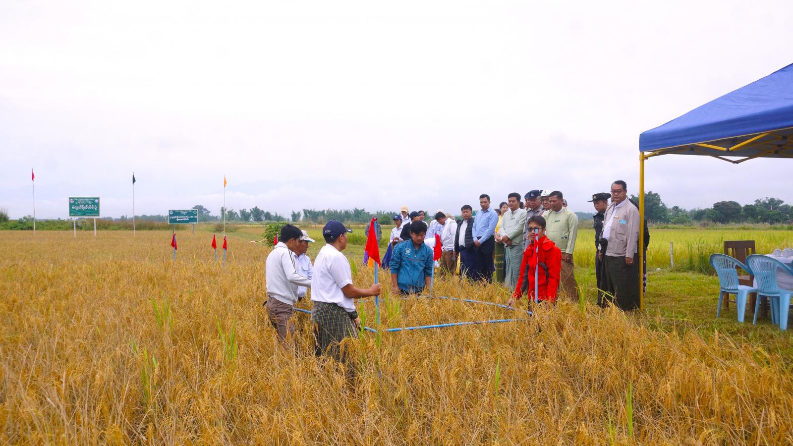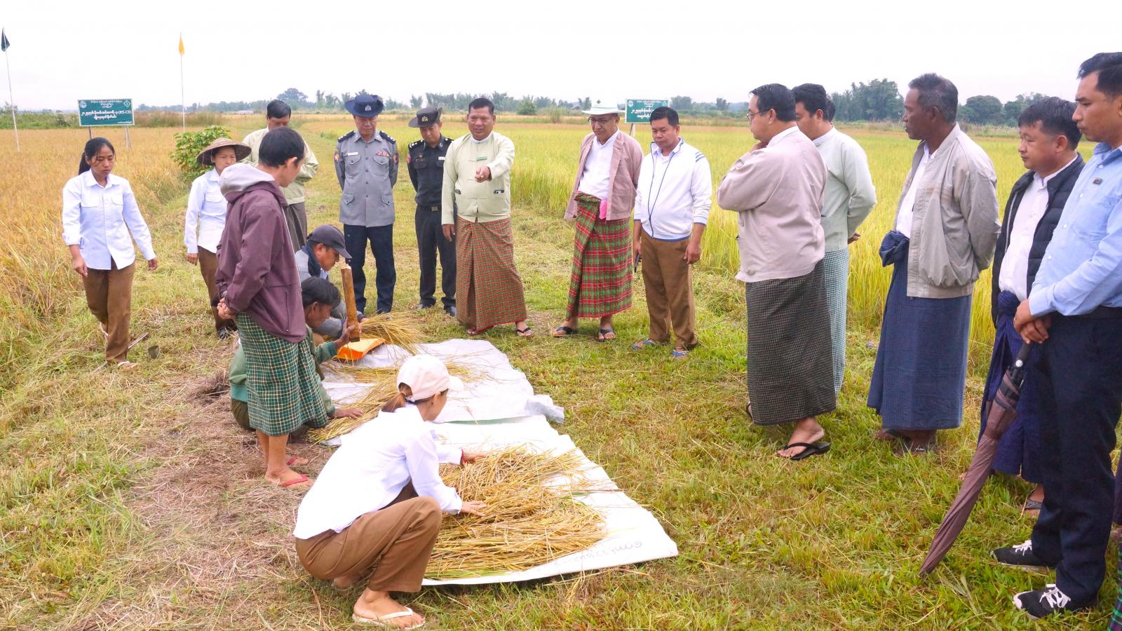 အခမ်းအနားသို့ ခရိုင်စီမံခန့်ခွဲရေးနှင့် အုပ်ချုပ်ရေးကော်မတီဥက္ကဋ္ဌ ဦးစိုးထွန်းနှင့်အဖွဲ့ဝင်များ၊ မြို့နယ်စီမံခန့်ခွဲရေးနှင့်အုပ်ချုပ်ရေးကော်မတီဥက္ကဋ္ဌ ဦးကျော်ကျော်လွင်နှင့်အဖွဲ့ဝင်များ၊ ခရိုင်/မြို့နယ် စိုက်ပျိုးရေးညှိနှိုင်းမှုအဖွဲ့အဖွဲ့ဝင်များ၊ ခရိုင်/မြို့နယ်စိုက်ပျိုးရေးဝန်ထမ်းများနှင့် ဒေသခံတောင်သူများ တက်ရောက်ကြပြီး အဆိုပါစိုက်ကွက်ကို စံကွက်ရိတ်သိမ်းခဲ့ကြရာ တစ်ဧကအထွက်နှုန်း အစိုအထွက် တင်း ၁၀၇ တင်းနှုန်းထွက်ရှိကြောင်းသိရသည်။