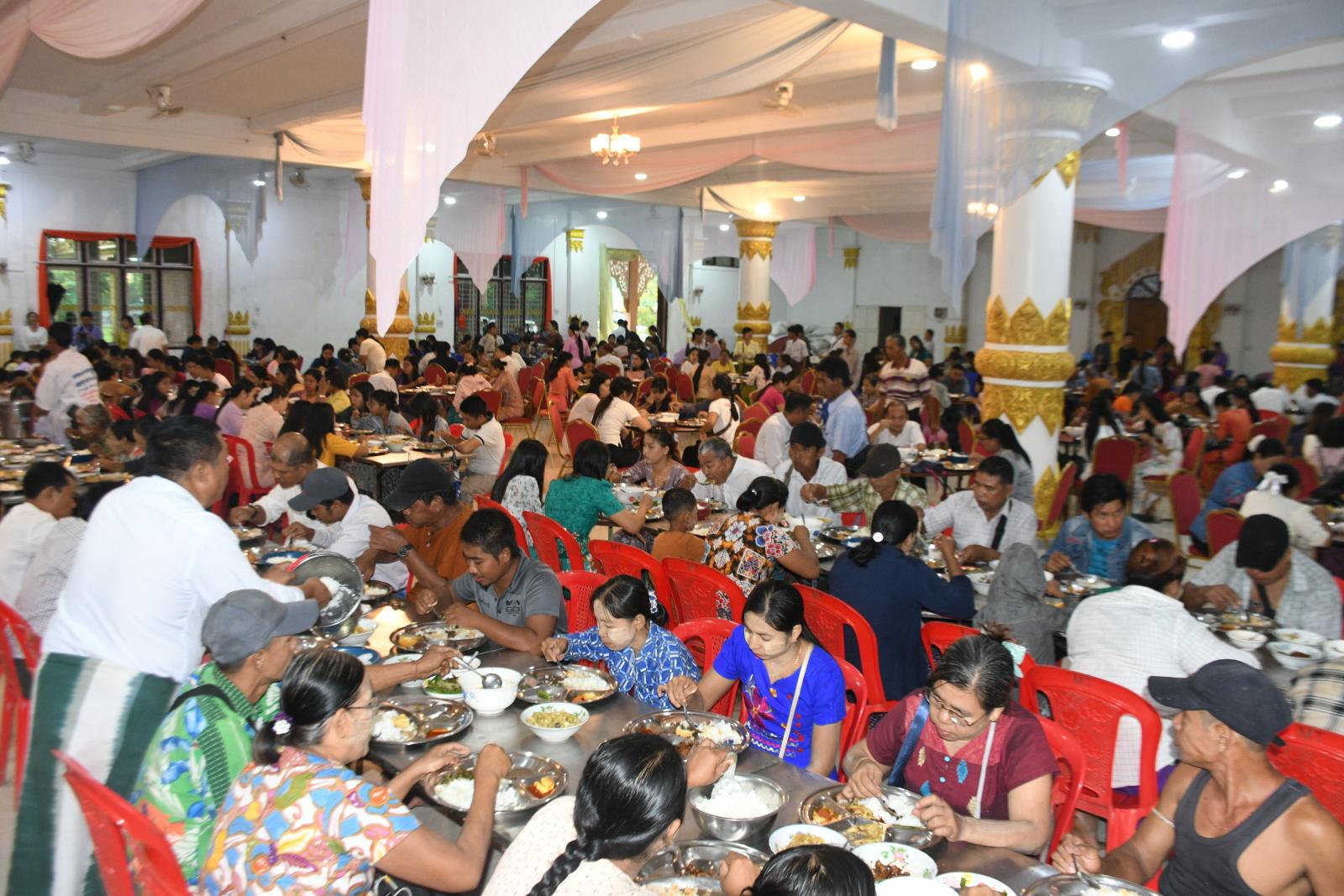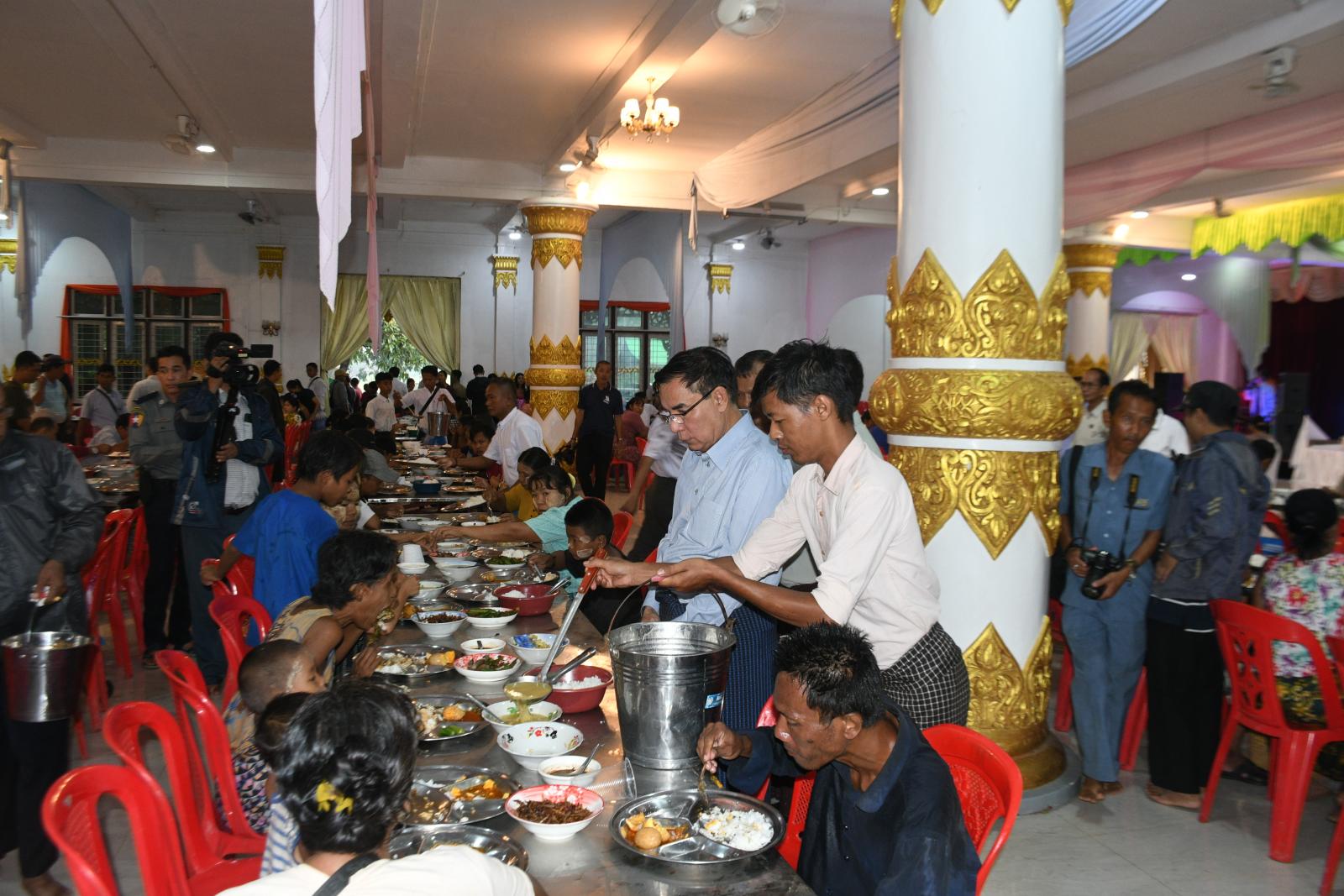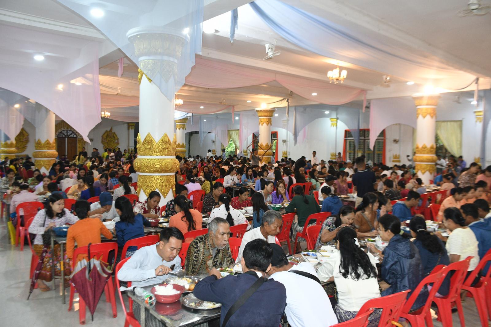 ရှေးဦးစွာ တိုင်းဒေသကြီး ဝန်ကြီးချုပ် ဦးမျိုးဆွေဝင်း ဇနီး၊ အစိုးရအဖွဲ့ဝင်ဝန်ကြီးများနှင့် ၎င်းတို့၏ဇနီးများတို့သည် ဗုဒ္ဓအသံဓမ္မဗိမာန်အောက်ထပ်၊ စိတ္တသုခခန်းမ၌ တိုင်းဒေသကြီး အစိုးရအဖွဲ့နှင့် မြို့မိ/မြို့ဖများပူးပေါင်း၍ ဒေသခံပြည်သူများနှင့် ပဲခူးမြို့သို့ လာရောက် လည်ပတ် ကြသူများအား စတုဒီသာ ကျွေးမွေးနေမှုကို ကြည့်ရှုအားပေးခဲ့ပြီး စတုဒီသာလာရောက် သုံးဆောင်သူများအား ရင်းရင်းနှီးနှီး လိုက်လံ နှုတ်ဆက်ခဲ့သည်။