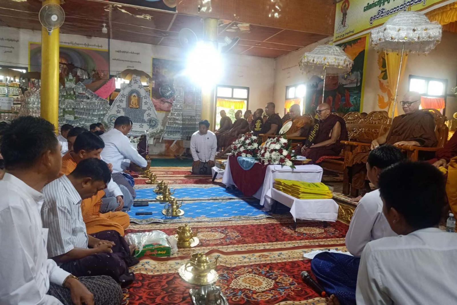 ဦးစွာ သံဃာတော်အရှင်သူမြတ်များ၊ ခရိုင်စီမံခန့်ခွဲရေးနှင့်အုပ်ချုပ်ရေးကော်မတီဥက္ကဋ္ဌ ဦးဝေမောင်နှင့် အဖွဲ့ဝင်များ၊ မိုင်းယောင်းတပ်နယ် တပ်နယ်မှူးနှင့် တပ်ရင်းတပ်ဖွဲ့ မိသားစုများ၊ မြို့နယ်စီမံခန့်ခွဲရေးနှင့်အုပ်ချုပ်ရေးကော်မတီဥက္ကဋ္ဌ ဦးစိုးသက်ဆွေနှင့် အဖွဲ့ဝင်များ၊ လူမှုရေးအသင်းအဖွဲ့များနှင့် အလှူရှင်များက နမောတဿသုံးကြိမ်ရွတ်ဆို ဘုရားကန်တော့ပြီး မိုင်းယုကျောင်းဆရာတော်ထံမှ ငါးပါးသီလခံယူဆောက်တည်ကြသည်။