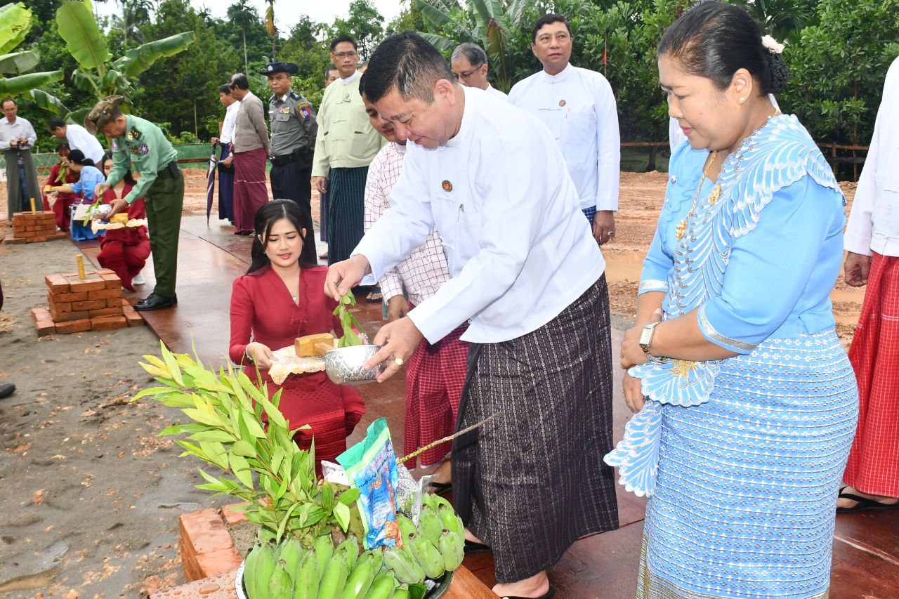 ထို့နောက် ပြည်နယ်ဝန်ကြီးချုပ်၊ ပြည်နယ်တရားလွှတ်တော် တရားသူကြီးချုပ်၊ ပြည်နယ်ဝန်ကြီးများနှင့် တာဝန်ရှိသူများသည် မင်္ဂလာအချိန်တွင် ရာမည ဖွံ့ဖြိုးတိုးတက်ရေး ဆောက်လုပ်ရေးနှင့် အထွေထွေစီးပွားရေးလုပ်ငန်း သဝါယမအသင်းလီမိတက်၏ အအေးခန်းစက်ရုံ၊ ပစ္စည်းသိုလှောင်ရုံနှင့် လူနေဆိုင်ခန်းများ ဆောက်လုပ်မည့် မြေနေရာအတွင်း သတ်မှတ်နေရာအသီးသီးတွင် မင်္ဂလာပန္နက်တိုင်များအား (၃)ကြိမ်စီ ရိုက်သွင်းခဲ့ကြပြီး အမွှေးနံ့သာရည်များ ပက်ဖျန်းပေးခဲ့ကြသည်။
