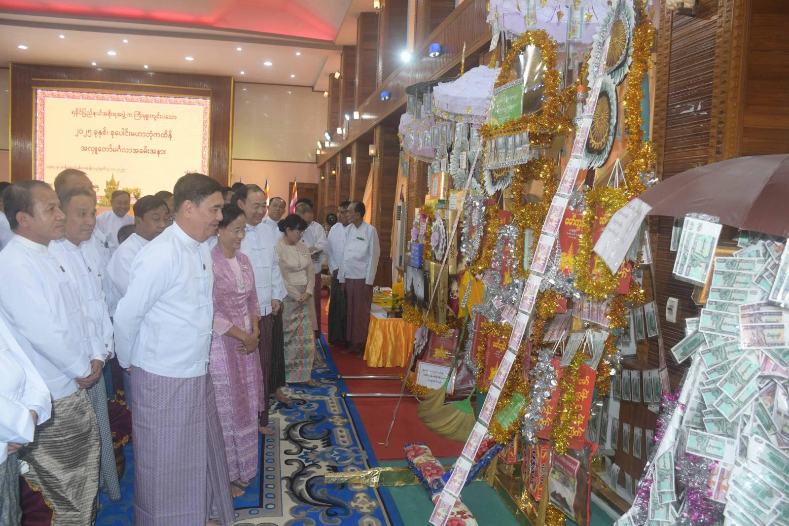 ရခိုင်ပြည်နယ်အစိုးရအဖွဲ့ကကြီးမှူး၍ ဌာနဆိုင်ရာများ စုပေါင်းမဟာဘုံကထိန် အလှူပွဲတော်တွင် စစ်တွေမြို့ပေါ်ရှိ ကထိန်သင်္ကန်းမရရှိသေးသည့် ကျောင်းတိုက် ၆၂ တိုက်မှ ဆရာတော်များအား ပင့်ဖိတ်ပြီး ရခိုင်ပြည်နယ်အစိုးရအဖွဲ့နှင့် ဝန်ကြီးဌာနအလိုက် ဌာနဆိုင်ရာများမှစုပေါင်း၍ ကထိန်သင်္ကန်း ဆက်ကပ်လှူဒါန်းခြင်းဖြစ်ရာ ပစ္စည်းတန်ဖိုး၊ ငွေသားတန်ဖိုး စုစုပေါင်း ၁၁၄၆၈၃၃၀၀ (ကျပ်တစ်ထောင်တစ်ရာ လေးဆယ်ခြောက်သိန်း ရှစ်သောင်း သုံးထောင် သုံးရာကျပ်တိတိ) ကို လှူဒါန်းနိုင်ခဲ့ဖြစ်သည်။