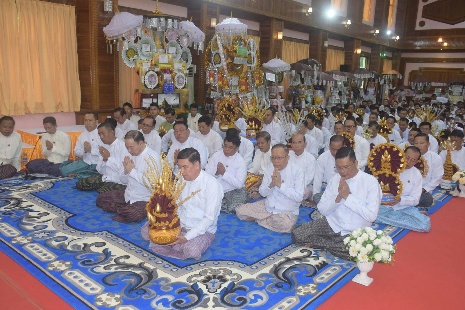ရခိုင်ပြည်နယ်အစိုးရအဖွဲ့ကကြီးမှူး၍ ဌာနဆိုင်ရာများ စုပေါင်းမဟာဘုံကထိန်အလှူတော် မင်္ဂလာပွဲကို ယနေ့နေ့လယ်ပိုင်းက စစ်တွေမြို့၊ ခိုင်သဇင်ခန်းမ၌ကျင်းပရာ သံဃာတော်အရှင် သူမြတ်များ၊ ရခိုင်ပြည်နယ်ဝန်ကြီးချုပ် ဦးထိန်လင်းနှင့်ဇနီး ပြည်နယ်အမျိုးသမီးရေးရာအဖွဲ့ နာယက ဒေါ်ဆွေဆွေမြတ်၊ အနောက်ပိုင်းတိုင်း စစ်ဌာနချုပ် တိုင်းမှူး၊ ဗိုလ်ချုပ် ကျော်စွာဦး၊ ပြည်နယ်တရားလွှတ်တော် တရားသူကြီးချုပ်၊ စစ်တွေတပ်နယ်မှ တပ်မတော်အဆင့်မြင့် အရာရှိကြီးများ၊ ပြည်နယ်အစိုးရအဖွဲ့ဝင်များနှင့်ဇနီးများ၊ ဌာနဆိုင်ရာများနှင့် ဖိတ်ကြားထားသူများ တက်ရောက်ကြသည်။