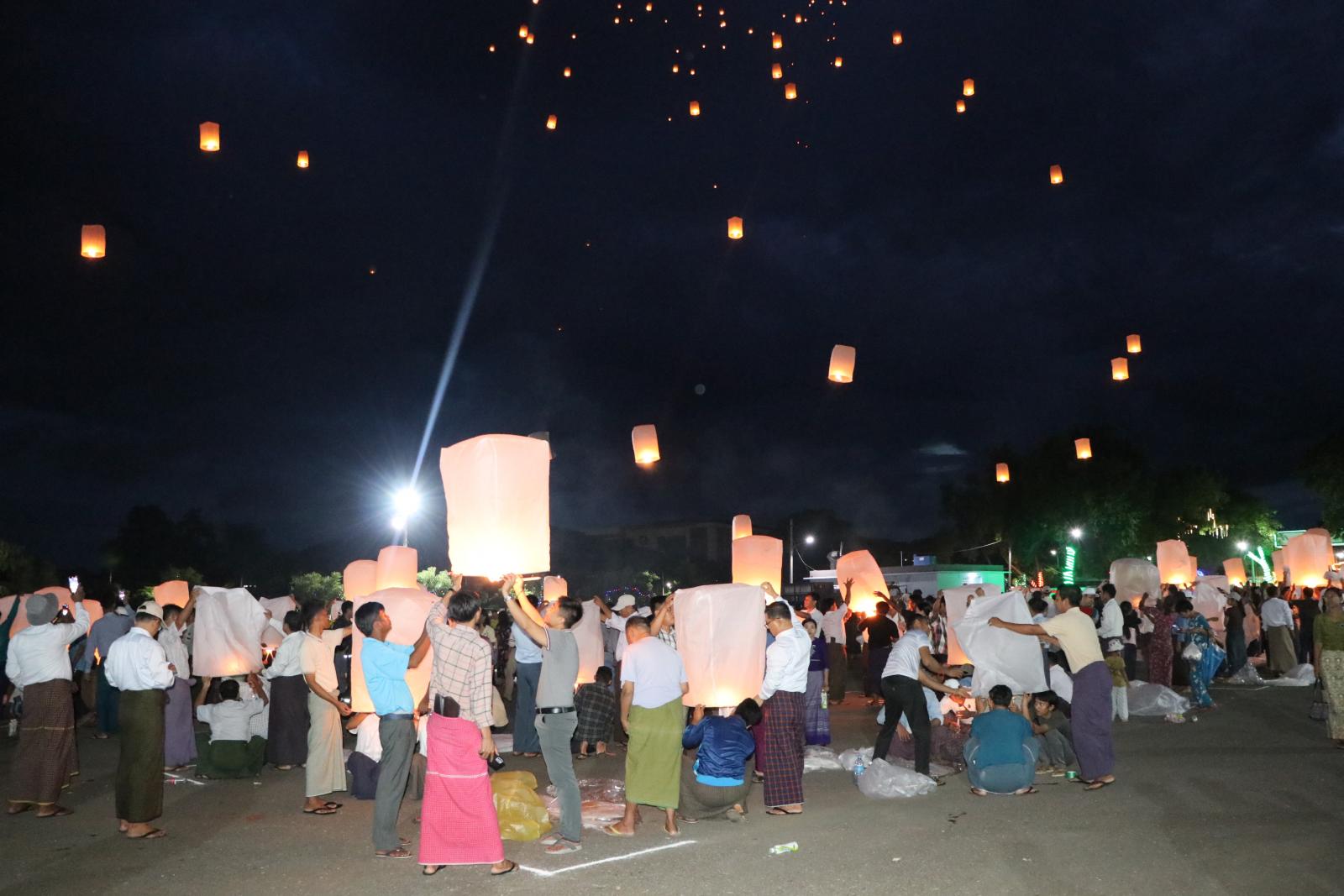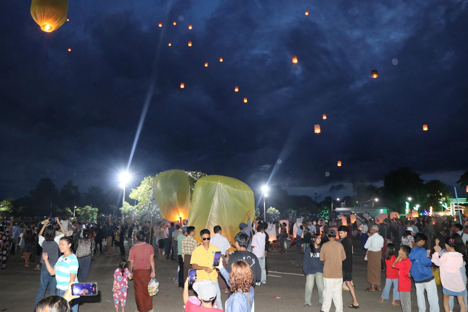 ဆက်လက်ပြီး တိုင်းဒေသကြီး ဝန်ကြီးချုပ်နှင့် တာဝန်ရှိသူများသည် အရှေ့ဘက် ကန်သာယာကန်ယာရှိ ပြည်ထောင်ရင်ပြင်၌ ကျင်းပပြုလုပ်သည့် တန်ဆောင်တိုင်ပွဲတော် သို့လာရောက်ကြသည့် မုံရွာမြို့ပေါ်ရှိ တက္ကသိုလ်/ဒီဂရီကောလိပ်များမှ ကျောင်းသား/ကျောင်းသူများနှင့် မြို့ပေါ်ရှိရပ်ကွက်နေ ပြည်သူများအား အားဖြည့်အချိုရည်များ၊ ရေသန့်များနှင့် မုန့်များအား ဝေငှခဲ့ကြပြီး ဌာနဆိုင်ရာဝန်ထမ်းများ၊ ကျောင်းသား/ကျောင်းသူများနှင့် မြို့နေပြည်သူများ အေးချမ်းသာယာစွာဖြင့် ဘဝအမောများ ပြေပျောက်စေရန်အတွက် နိုင်ငံကျော်အဆိုတော်များ၏ ဖျော်ဖြေနေမှုများအား မြို့နေပြည်သူ ၁၀၀၀၀ ကျော်တစ် ပျော်တစ်ပါး ပျော်ရွှင်စွာပါဝင်ဆင်နွဲနေမှုများအား ကြည့်ရှုအားပေးခဲ့ပြီး ဌာနဆိုင်ရာအသီး သီးမှဝန်ထမ်းများက မီးပုံးပျံအလုံး ၁၀၀၀ အား တစ်ပျော်တစ်ပါး လွှတ်တင်ကာ မီးရှူးမီး ပန်းများပစ်ဖောက်ခဲ့ကြောင်း သိရသည်။