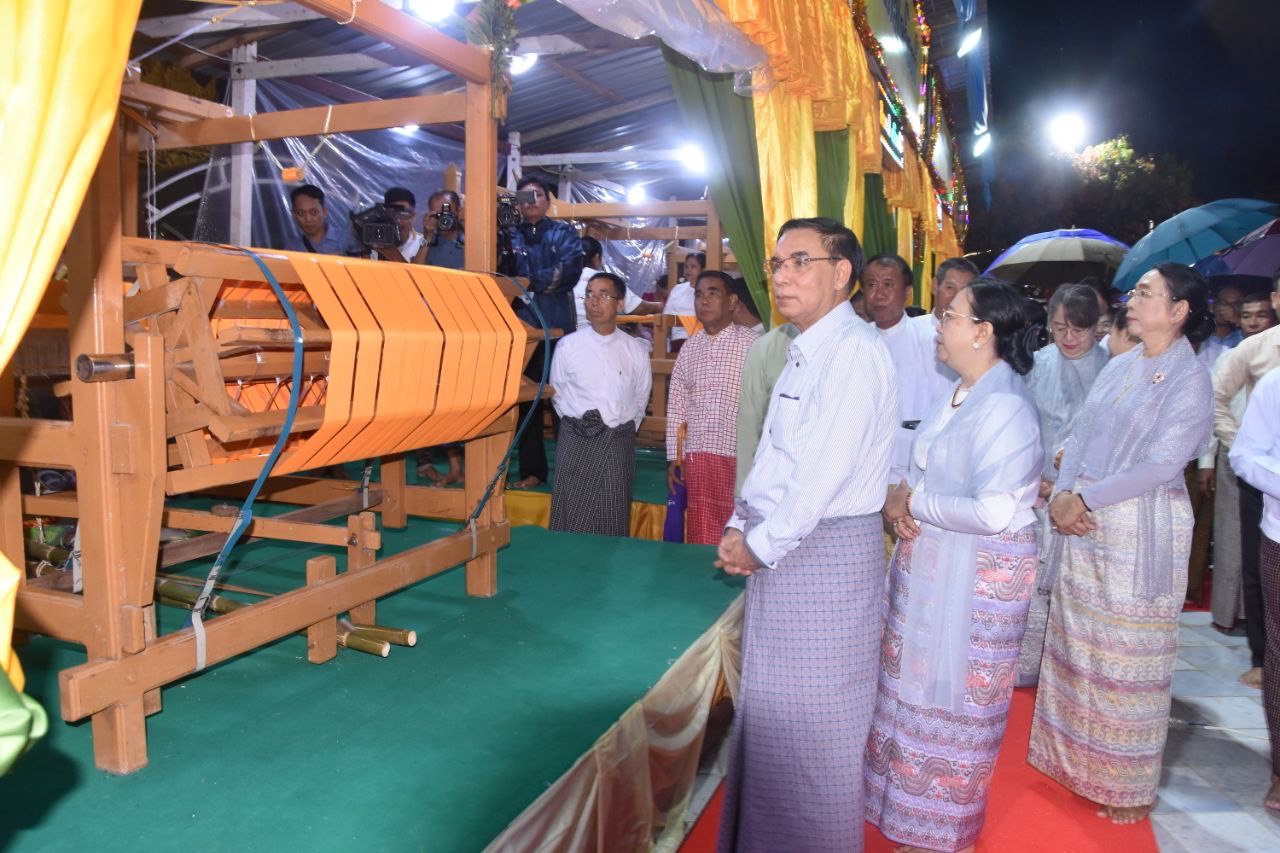 ထို့နောက် တိုင်းဒေသကြီး ဝန်ကြီးချုပ်နှင့်ဇနီးတို့က ယှဉ်ပြိုင်ရက်လုပ်နေသည့် ရာဇဓာတုကလျာ စင်တော်၊ ရှင်စောပုစင်တော်၊ ဝိသာခါစင်တော်၊ ယသော်ဓရာစင်တော်နှင့် ဂေါတမီစင်တော် ယက္ကန်းအဖွဲ့များ၏ မသိုးသင်္ကန်းရက်လုပ်နေမှုတို့အား လှည့်လည်ကြည့်ရှု အားပေးခဲ့ကြသည်။ ၎င်းနောက် တိုင်းဒေသကြီး ဝန်ကြီးချုပ်နှင့်ဇနီးတို့သည် ဆုတောင်းပြည့် ရွှေမော်ဓောစေတီတော်မြတ်ကြီး၌ (၄၄)ကြိမ်မြောက် မသိုးသင်္ကန်း ရက်လုပ်လှူဒါန်းပူဇော်ပွဲအခမ်းအနားသို့ လာရောက်ဖျော်ဖြေပေးခဲ့ကြသည့် ဆင်အကအဖွဲ့အား ဂုဏ်ပြုငွေများ ချီးမြှင့်ပေးအပ်ခဲ့ကြောင်း သိရသည်။