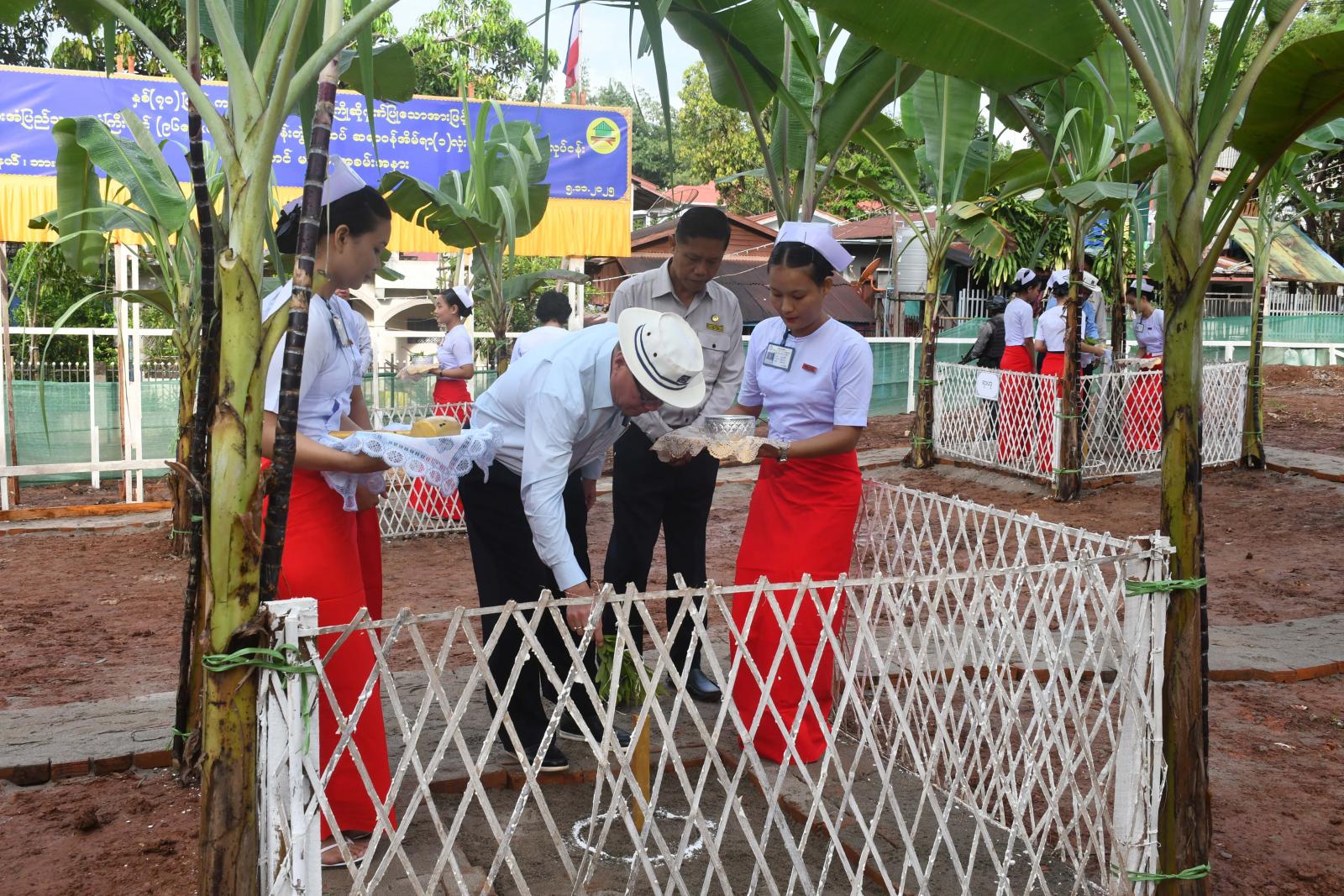 အဆိုပါ ဆရာဝန်အိမ်ရာကို ဆောက်လုပ်ရေးဝန်ကြီးဌာန အဆောက်အဦဦးစီးဌာန အဆောက်အဦအထူးအဖွဲ့(၁၃)က တာဝန်ယူတည်ဆောက်သွားမည်ဖြစ်ပြီး ပြည်နယ်ဝန်ကြီးချုပ်ဦးစောမြင့်ဦး၊ ပြည်နယ်တရားလွှတ်တော်တရား သူကြီးချုပ်ဦးညွန့်လင်း၊ ပြည်နယ်အစိုးရအဖွဲ့ဝင်များက မင်္ဂလာအချိန်တွင် ရတနာပန္နက်တော်များကို စိုက်ထူ၍ အမွှေးနံ့သာရည်များ ပက်ဖျန်းပေးကြသည်။