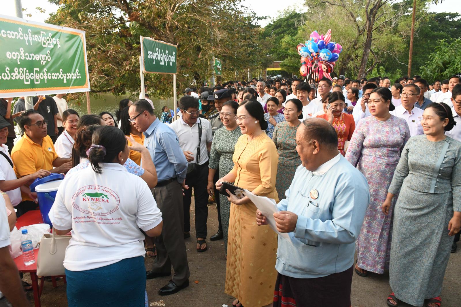 ထို့နောက် ပြည်နယ်ဝန်ကြီးချုပ်နှင့်တာဝန်ရှိသူများသည် ဘားအံမြို့၊ အမှတ်(၁)ရပ်ကွက်၊ ကျော်ဇေယျလမ်းနှင့် မာန်းနဲစန်လမ်းတို့တွင် ဌာနဆိုင်ရာများ၊ အသင်းအဖွဲ့များ၊ စီးပွားရေးလုပ်ငန်းရှင်များနှင့်ကုမ္ပဏီများ၊ ရပ်ကွက်/ကျေးရွာ များမှ ပုဂ္ဂလိကအလှူရှင်များ၏ စတုဒိသာမဏ္ဍပ်(၅၉)ခု၌ ကြာဇံကြော်၊ ခေါက်ဆွဲကြော်၊ ကရင်မုန့်ဟင်းခါး၊ မြန်မာမုန့် အမျိုးမျိုး၊ ရွှေရင်အေး၊ ရေခဲမုန့်နှင့်အချိုရည်အမျိုးမျိုးအစရှိသော အစားအစာ ၁၄ မျိုးဖြင့် စုပေါင်းကုသိုလ်ပြုနေမှုအား လှည့်လည်ကြည့်ရှုအားပေးပြီး ပါဝင်ဆင်နွှဲကြသည့် အနယ်နယ်အရပ်ရပ်မှမိဘပြည်သူများနှင့်အတူ တည်ခင်းဧည့်ခံသောအစားအစာများကို အတူတကွအားပေးသုံးဆောင်ခဲ့ကြသည်။