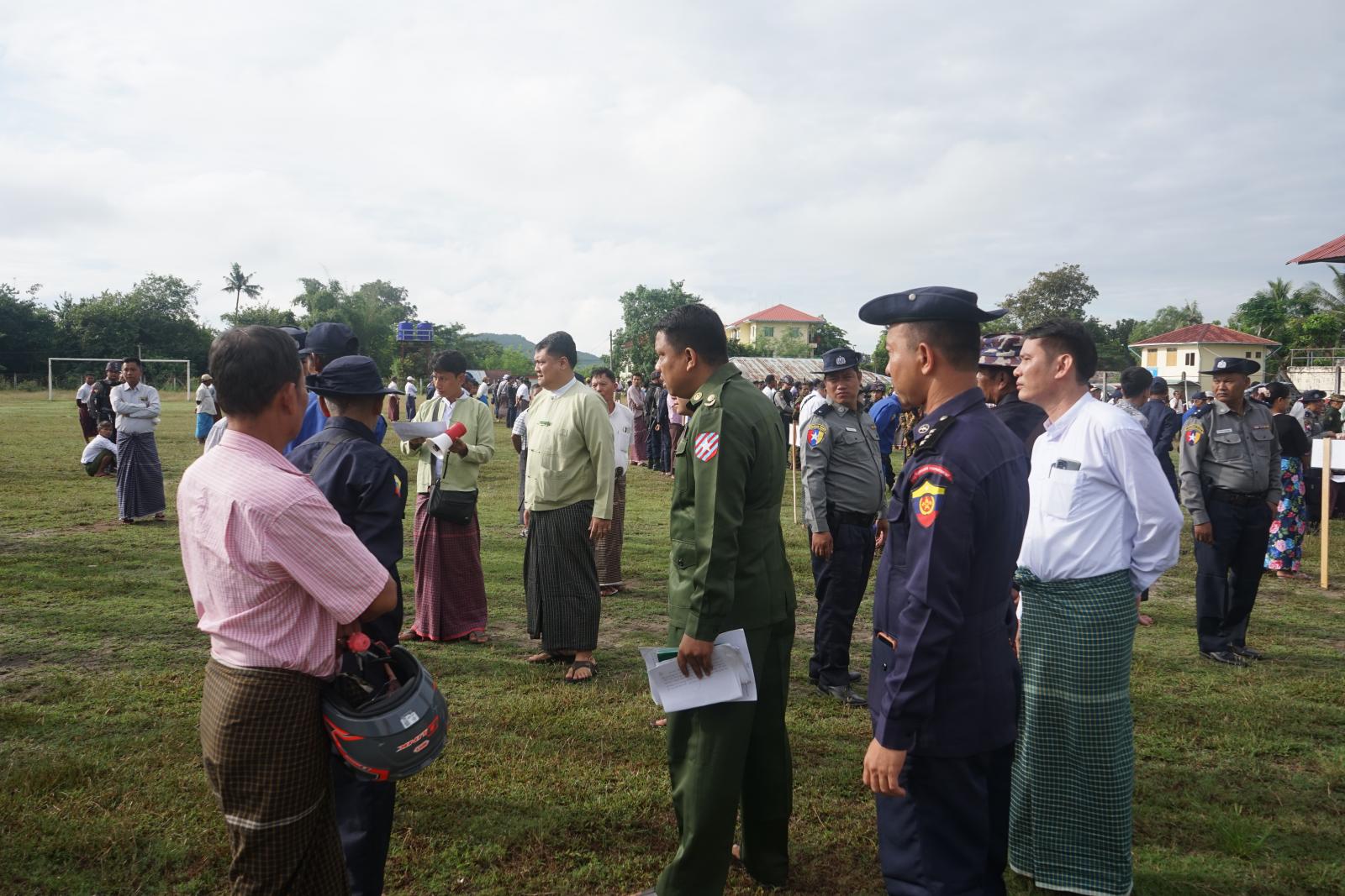 အဆိုပါလုံခြုံရေးဇာတ်တိုက်လေ့ကျင့်ခြင်းကို မြို့နယ်စီမံခန့်ခွဲရေးနှင့်အုပ်ချုပ်ရေးကော်မတီဥက္ကဋ္ဌ ဦးဇော်နိုင်ဝင်းနှင့် အဖွဲ့ဝင်များ၊ မြို့နယ်ရွေးကောက်ပွဲကော်မရှင်အဖွဲ့ခွဲ တာဝန်ရှိသူများမှ ကြီးကြပ်ဆောင်ရွက်ခဲ့ကြပြီး ဇုန်အလိုက် လုံခြုံရေးဆောင်ရွက်ကြမည့် တာဝန်ရှိသူများနှင့် ရွေးကောက်ပွဲကျင်းပနေစဉ် ဗဟိုစည်း၊ အနီးစည်း၊ အတွင်းစည်း၊ အပြင်စည်းနှင့် အဝေးစည်း လုံခြုံရေးတာဝန်ယူဆောင်ရွက်မည့်အဖွဲ့တို့အား မဲရုံနှင့်ပတ်သက်သည့် လုပ်ငန်းစဉ်များအား ပြောကြားကာ ဇာတ်တိုက်လေ့ကျင့်ခြင်းများ ဆောင်ရွက်ခဲ့ကြသည်။