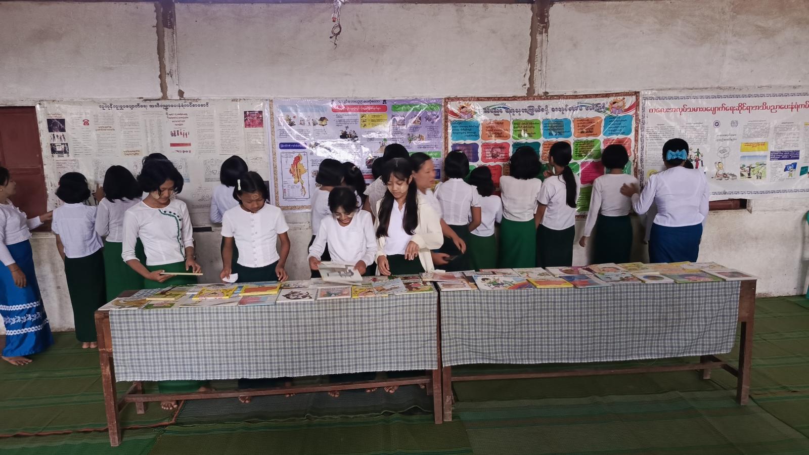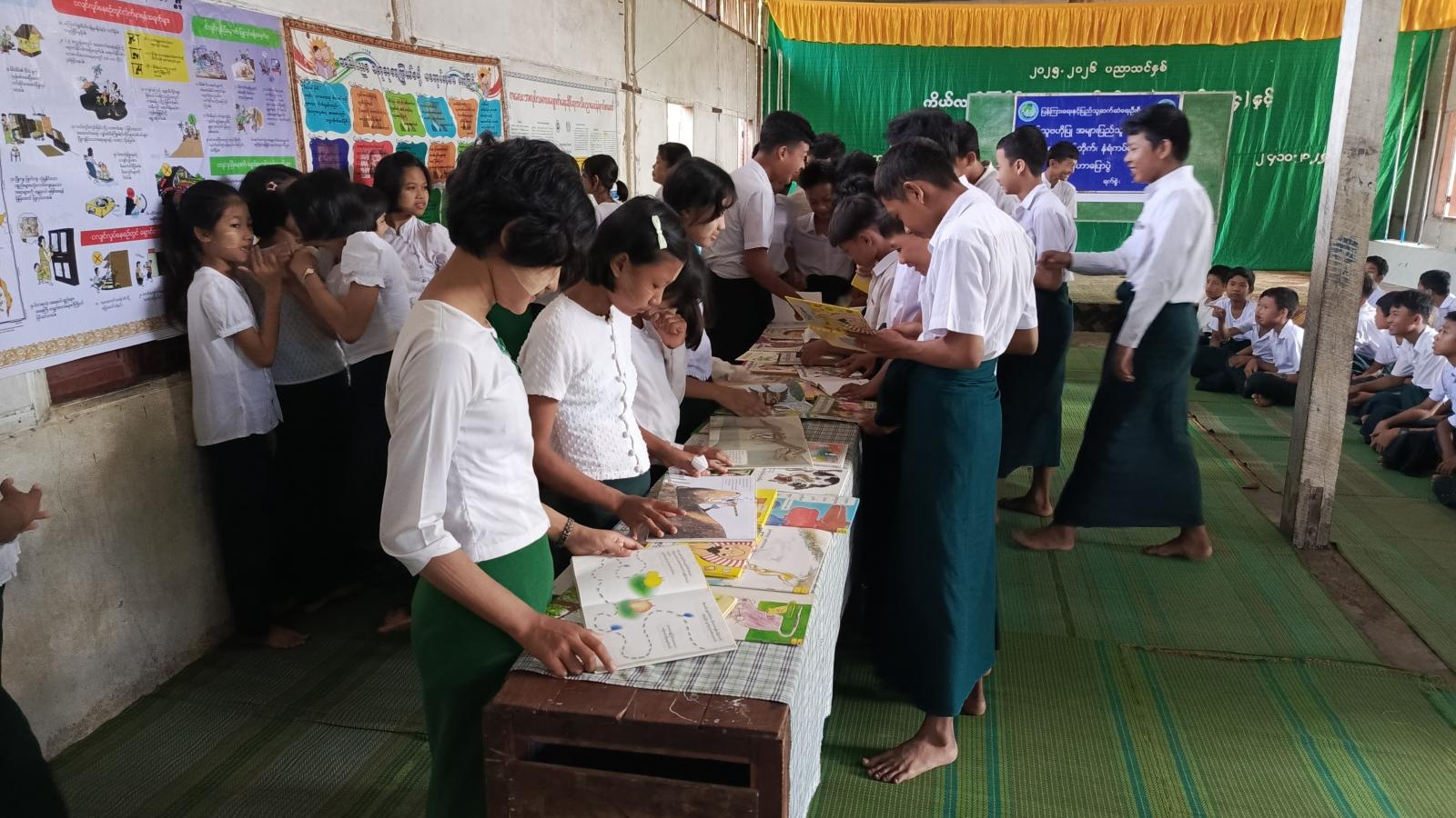 ဆက်လက်၍ ပြန်ကြားရေးနှင့်ပြည်သူ့ဆက်ဆံရေး ဦးစီးဌာနမှ ဝန်ထမ်းများက ကျောင်းသား၊ ကျောင်းသူများအား အသိပညာဗဟုသုတရရှိစေမည့် စာအုပ်စာစောင်များကိုပြသ၍ ဖတ်ရှုစေခြင်း၊ကလေးအလုပ်သမားပပျောက်ရေးနံရံကပ်စာစောင်၊ကလေးအလုပ်သမားပပျောက်ရေးနှင့် အသိပညာဗဟုသုတကြွယ်ဖို့ စာအုပ်စာပေဖတ်ကြစို့ အသိပညာပေးနံရံကပ်စာစောင်များ ပြသခြင်းတို့ကိုဆောင်ရွက်ခဲ့ရာ ဆရာ၊ဆရာမများနှင့် ကျောင်းသား၊ ကျောင်းသူများမှ စိတ်ပါဝင်စားစွာ လေ့လာကြည့်ရှုမှတ်သားခဲ့ကြောင်း သိရသည်။