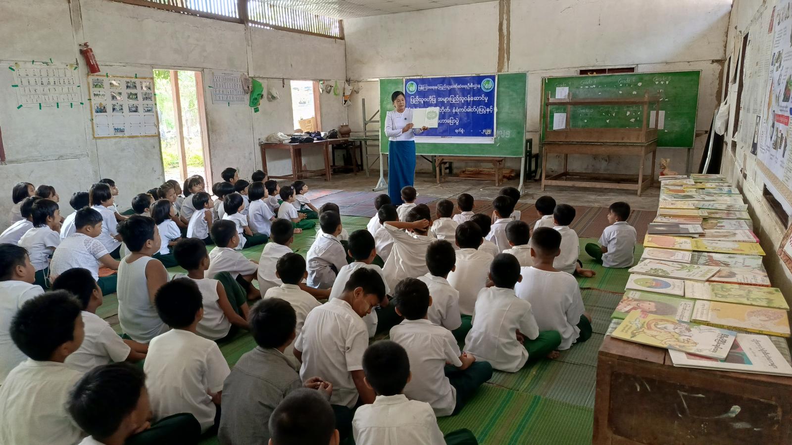 ရှေးဦးစွာ အ.လ.က (လယ်တွင်း)ကျောင်း ကျောင်းအုပ်ဆရာမကြီး ဒေါ်ခင်သွယ်သွယ်လင်းက အဖွင့်အမှာစကားပြောကြားပြီး၊ ဇီးကုန်းမြို့နယ် ပြန်ကြားရေးနှင့်ပြည်သူ့ဆက်ဆံရေးဦးစီးဌာနမှ မြို့နယ်ဦးစီးအရာရှိ ဒေါ်မာမာဦးက ကျောင်းသား/ကျောင်းသူလူငယ်များအနေဖြင့် ကျောင်းစာအပြင် ပြင်ပ စာအုပ်စာစောင်များ လေ့လာဖတ်ရှုခြင်းကြောင့် ကိုယ်တိုင်စဉ်းစားတွေးခေါ်တတ်သော အတွေးအခေါ် အမြော်အမြင်များ ရရှိစေရန်၊ အားလပ်ချိန်ကို အကျိုးရှိစွာ အသုံးပြုကြရေး၊ ကျောင်းစာကို ကြိုးစားကြသလို ဗဟုသုတတိုးပွားစေရန်နှင့် ကလေးအလုပ်သမားပပျောက်ရေးအကြောင်းကိုဟောပြောခြင်း၊ ဒုတိယဦးစီးမှူး ဒေါ်ရီရီမြင့်က ပုံပြင်စာအုပ်များဖတ်ပြခြင်းနှင့် စားသုံးသူရေးရာဦးစီးဌာန မြို့နယ်တာဝန်ခံ ဒေါ်မြင့်မြင့်ခင်က စားသုံးသူကာကွယ်ရေးဥပဒေအကြောင်း၊ ကုန်ညွှန်းအမှတ်အသား ပြည့်စုံပါဝင်မှုနှင့် စားသုံးရန်မသင့်သော အစားအသောက်များ အကြောင်းတို့ကို အသိပညာပေးဟောပြောခဲ့၍ အသိပညာပေး နံရံကပ်စာစောင်များကို ပြသပေးခဲ့သည်။