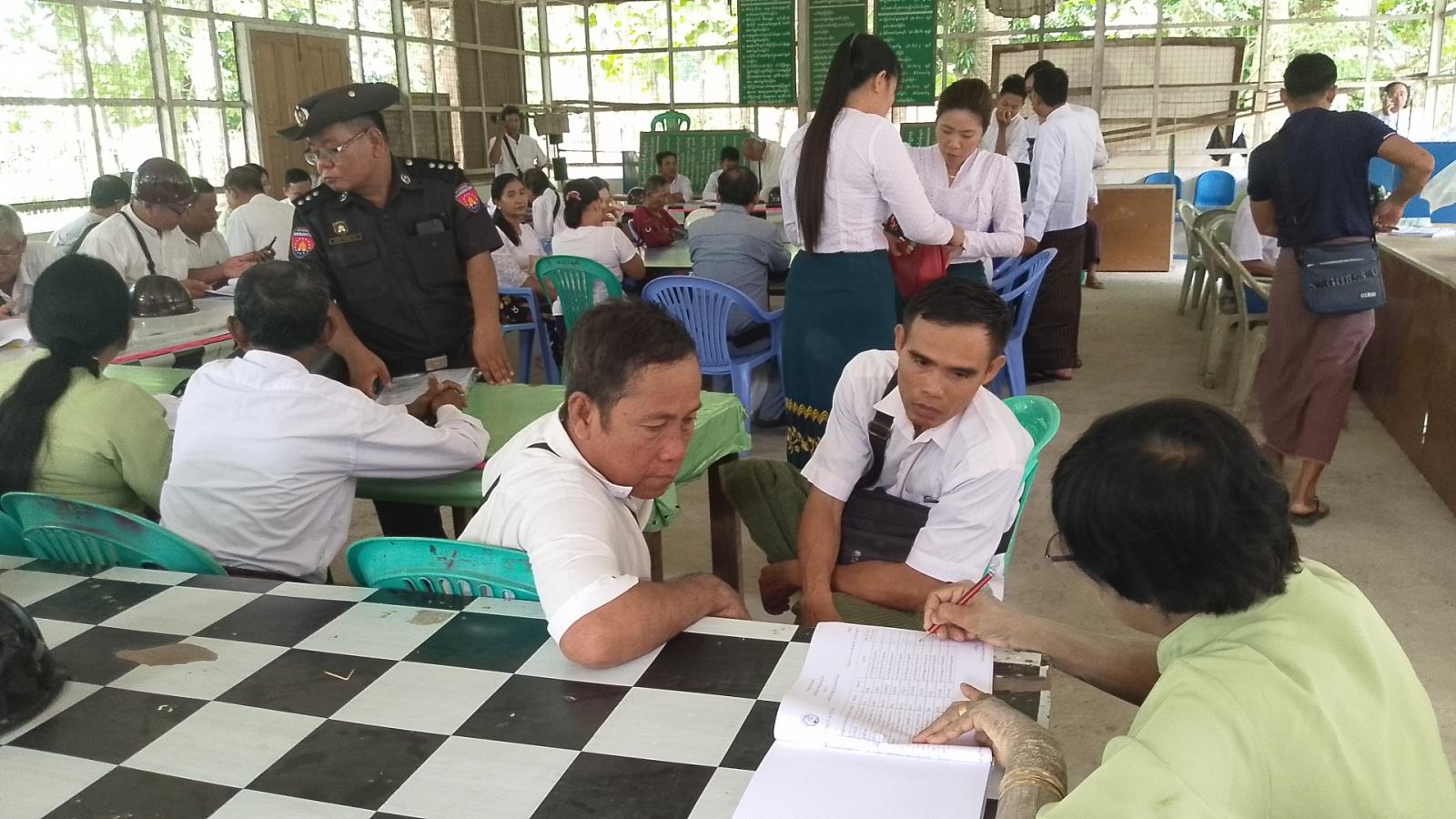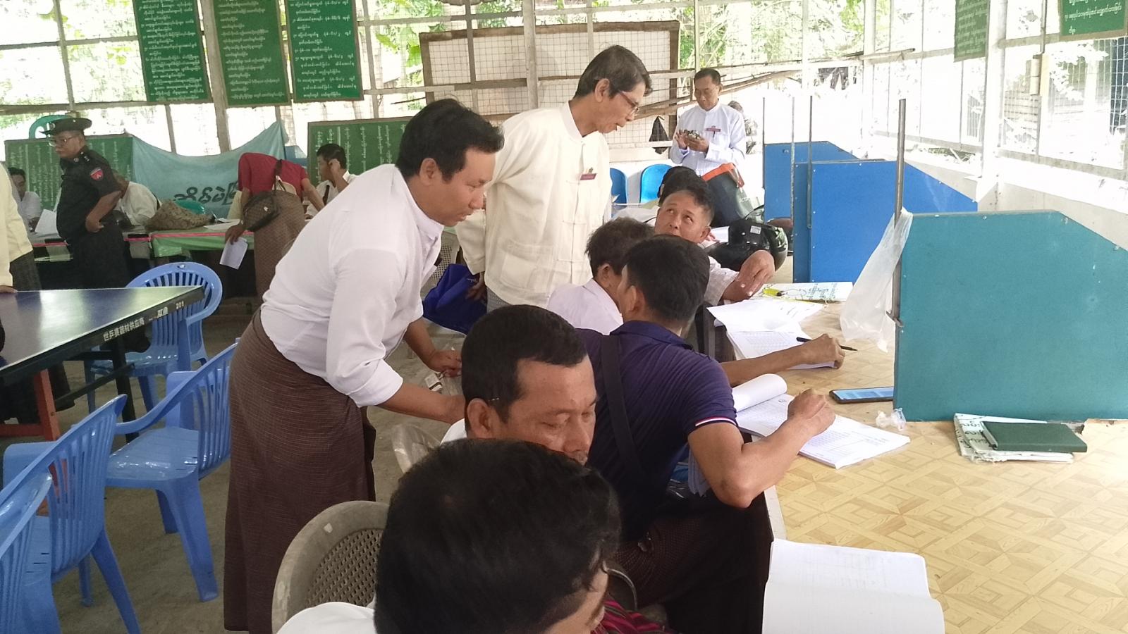 ဆက်လက်ပြီး ဒုတိယအကြိမ်ကပ်ထားကြေညာမည့် မဲစာရင်းများမှန်ကန်စေရေးအတွက် မြို့နယ်အထွေထွေအုပ်ချုပ်ရေးဦးစီးဌာန ရုံးဝန်းအတွင်းရှိ One Stop Service ရုံးတွင် မြို့နယ်မဲစာရင်းစစ်ဆေးရေး အဖွဲ့များနှင့် နယ်မြေ (၁)မှ (၅)အထိ မဲဆန္ဒရှင်စာရင်းများကို စစ်ဆေးခဲ့ကြောင်းသိရသည်။