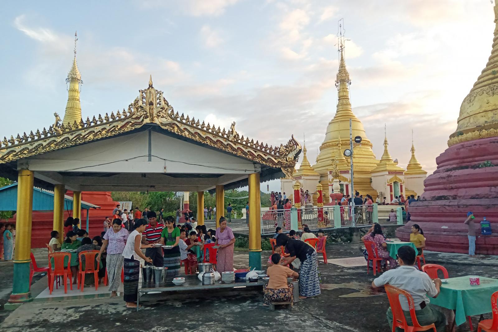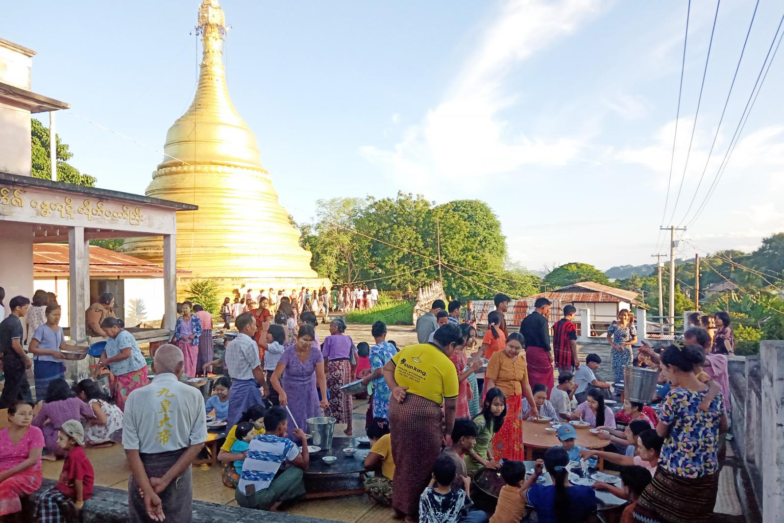 အဆိုပါ ဘုရား ပုထိုး စေတီများတွင် ဆီမီး၊ ပန်း၊ ရေချမ်းဆက်ကပ်လှူဒါန်းခြင်းတို့ဖြင့် ဘုရားဖူးလာရောက်သူများ စည်ကားလျက်ရှိပြီး ဘုရားဖူးလာရောက်ကြသည့် ဧည့်ပရိတ်သတ်များအား စေတနာရှင် အလှူရှင်များက မုန့်ဟင်းခါး၊နို့စိမ်းခေါက်ဆွဲ၊ ကြာဇံဟင်းခါး၊ ပေါင်မုန့်အုန်းနို့ဆမ်းအစရှိသည့် မြန်မာ့ရိုးရာ အစားအစာများဖြင့် စတုဒီသာ ကုသိုလ်ပြုလှူဒါန်းခဲ့ကြကြောင်း သိရသည်။