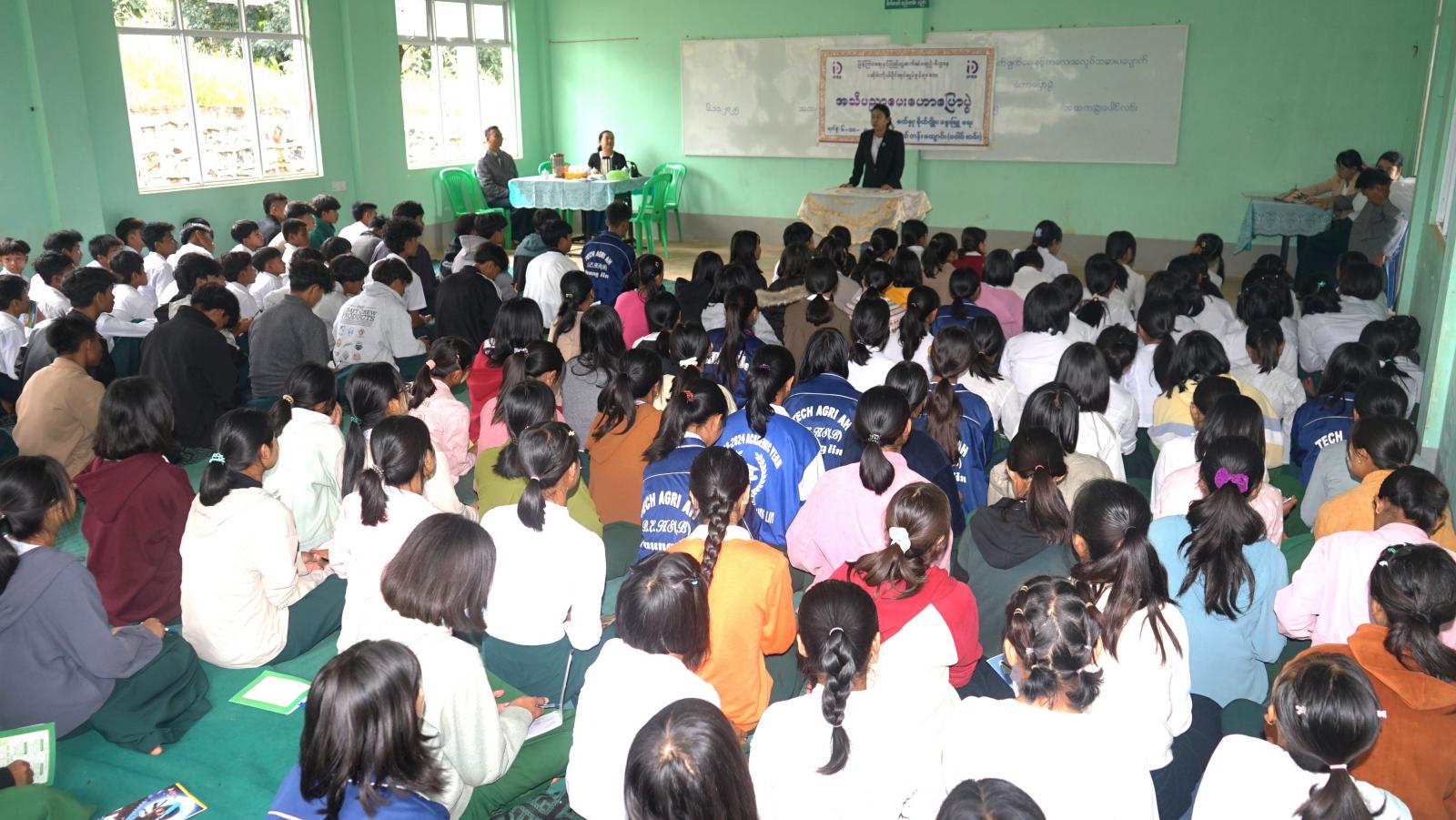 ဆက်လက်၍ မြို့နယ်ပတ်ဝန်းကျင်ထိန်းသိမ်းရေးဦးစီးဌာန ဒုတိယဦးစီးမှူး ဦးသန်းထိုက်စိုးက ကျောင်းသား၊ ကျောင်းသူများအား ရေချိုသယံဇာတအကြောင်း သိကောင်းစရာများ၊ မီးခိုးမြူငွေ့ဖြစ်ပေါ်သည့် အဓိကအကြောင်းရင်းများ၊ မီးခိုးမြူငွေ့များတွင်ပါဝင်သော လေထုညစ်ညမ်းစေသည့်အရာများ၊ မီးခိုးမြူငွေ့များကြောင့် လေထုညစ်ညမ်း၍ ဖြစ်ပွားစေနိုင်သော ဆိုးကျိုးများနှင့် မီးခိုးမြူငွေ့ညစ်ညမ်းမှုလျှော့ချရေး လုပ်ငန်းစဉ်များကို အသိပညာပေးဟောပြောခဲ့ကြောင်း သိရသည်။