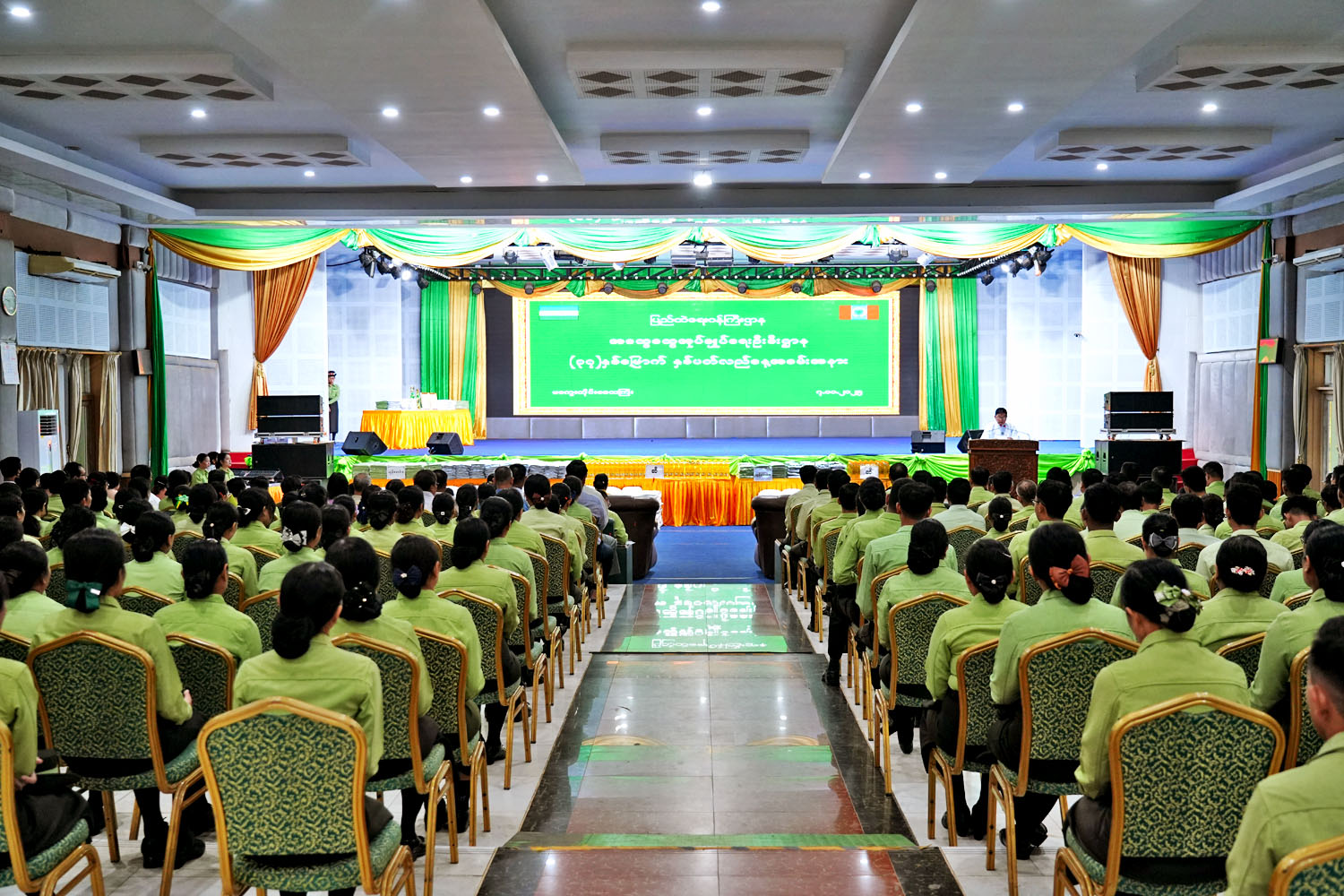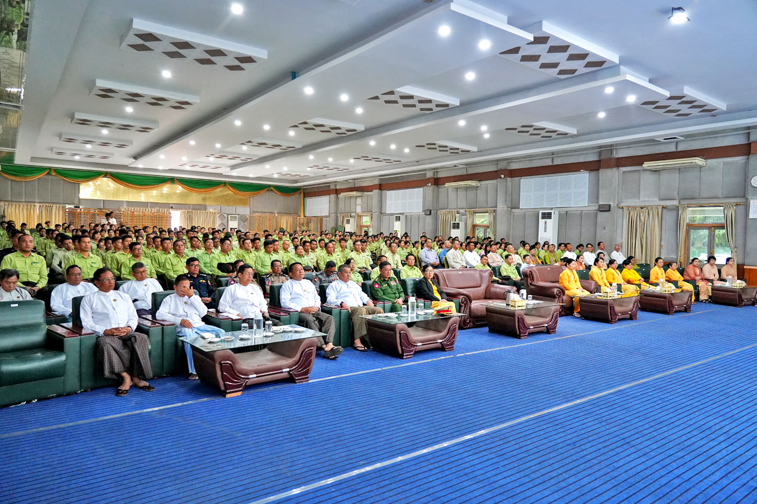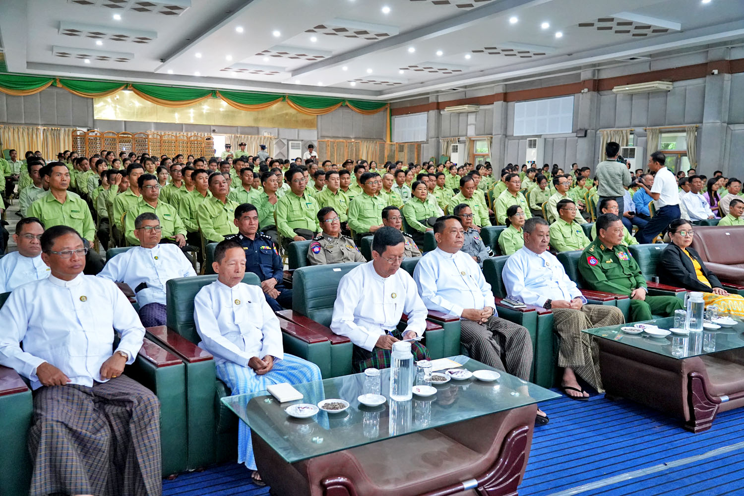 ဦးစွာ တိုင်းဒေသကြီးဝန်ကြီးချုပ် ဦးတင့်လွင်က ခုလိုမင်္ဂလာရှိတဲ့ နိုဝင်ဘာလ ၇ ရက်နေ့ အထွေထွေအုပ်ချုပ်ရေးဦးစီးဌာနရဲ့ (၃၇)နှစ် မြောက် နှစ်ပတ်လည်နေ့အခမ်းအနားကို တက်ရောက် ချီးမြှင့်ရတဲ့အတွက် အထူးပင်ဂုဏ်ယူဝမ်းမြောက်ကြောင်း၊ နိုင်ငံတော်ငြိမ်ဝပ်ပိပြားမှု တည်ဆောက်ရေးအဖွဲ့ကာလမှာ ပြည်ထောင်စုမြန်မာနိုင်ငံတော်အစိုးရအဖွဲ့က(၁၉၈၈ ခုနှစ်၊ နိုဝင်ဘာလ(၇) ရက်နေ့) ရက်စွဲပါ အမိန့်ကြော်ငြာစာအမှတ်(၄/၈၈)ဖြင့် “အထွေထွေ ဦးစီးဌာန”ကို “အထွေထွေအုပ်ချုပ်ရေးဦးစီးဌာန”လို့ ပြင်ဆင်သတ်မှတ်၍ ပြန်လည်ဖွဲ့စည်း ကြောင်းကြေညာခဲ့ကြောင်း၊ အဲဒီပြန်လည်ဖွဲ့စည်းခဲ့တဲ့ရက်ကို အစွဲပြုပြီး ဌာနနှစ်ပတ်လည်နေ့အဖြစ် သတ်မှတ်ခဲ့တာဟာ ယနေ့ ၂၀၂၅ ခုနှစ်၊ နိုဝင်ဘာလ (၇)ရက်နေ့မှာ(၃၇)နှစ် ကာလတိုင်ရောက်ရှိခဲ့ပြီ ဖြစ်ပါကြောင်း၊ ခေတ်အဆက်ဆက် ပြောင်းလဲခဲ့ပေမယ့်လည်းအစဉ်အလာကြီးမားခဲ့တဲ့ အထွေထွေအုပ်ချုပ်ရေးဦးစီးဌာနသည် အုပ်ချုပ်ရေးကဏ္ဍကို အထောက်အကူပြု ဆောင်ရွက်နေတာဟာ ယနေ့အထိဖြစ်ပါကြောင်း၊ နိုင်ငံတော်နှင့် အထွေထွေအုပ်ချုပ်ရေးဦးစီးဌာနအတွက် ပေးအပ်သောတာဝန်ကို ရဲရဲဝံ့ဝံ့စွန့်စွန့်စားစား တာဝန်ထမ်းဆောင်ခဲ့ကြတဲ့ ရပ်ကွက်/ကျေးရွာအုပ်စုအုပ်ချုပ်ရေးမှူးများနှင့် ရပ်ကွက်/ကျေးရွာအုပ်စု စာရေးဝန်ထမ်းများကိုလည်း မကွေးတိုင်းဒေသကြီးအစိုးရအဖွဲ့အနေဖြင့် မှတ်တမ်းတင်ဂုဏ်ပြုအပ်ပါကြောင်း၊ အထွေထွေအုပ်ချုပ်ရေးဦးစီးဌာန ဝန်ထမ်းများသည် ခေတ်အဆက်ဆက်မှာ မည်သည့် နိုင်ငံရေးစနစ် ကျင့်သုံးခဲ့သည်ဖြစ်စေ နိုင်ငံတော်၏အုပ်ချုပ်ရေးယန္တရား တည်ငြိမ်ခိုင်မာလာအောင် နိုင်ငံတော်၏ အုပ်ချုပ်ရေးစနစ်၊ နိုင်ငံတော်၏ အုပ်ချုပ်ရေး အာဏာပျံ့နှံ့ ထိရောက်အောင် အစဉ်အဆက် ထမ်းဆောင်ခဲ့ကြတာကို တွေ့ရှိရပါကြောင်း၊ အဆင့်ဆင့်သော အထွေထွေ အုပ်ချုပ်ရေးဦးစီးဌာနမှ အရာထမ်း၊ အမှုထမ်းများ အားလုံးသည် အစိုးရအဖွဲ့ရုံး၏ ကြီးလေးသော လုပ်ငန်းတာဝန်များကို ကျေပွန်စွာ ထမ်းဆောင်နေကြတဲ့ ရုံးအဖွဲ့များဖြစ်ပြီး အရေးကြီးတဲ့ ဌာနလည်းဖြစ်သည်နှင့်အညီ လူပုဂ္ဂိုလ်လုံခြုံရေး၊ သတင်းလုံခြုံရေး၊ လုံခြုံမှုအဆင့်ရှိတဲ့စာများ ထိန်းသိမ်းရေးနှင့် သတင်းပေါက်ကြားမှု မရှိစေရေးကို အထူးအလေးထား ဆောင်ရွက်ရန် မှာကြားလိုကြောင်း၊ ဒီဇင်ဘာလ(၂၈)ရက်တွင် ရွေးကောက်ပွဲများ စတင်ကျင်းပပြုလုပ်တော့မည်ဖြစ်ပြီး ပြည်သူများ လိုလားတောင့်တခဲ့သည့် ပါတီစုံဒီမိုကရေစီစနစ်ကို တပ်မတော်က ပြန်လည်ဖော်ဆောင်ခိုင်မာစေပြီး ပြည်သူ့လက်ထဲအရောက် အပ်နှင်းတော့မှာဖြစ်ပါကြောင်း၊ ဒါကြောင့် လွတ်လပ်ပြီး တရားမျှတသည့် ရွေးကောက်ပွဲ အောင်မြင်စွာကျင်းပနိုင်ရေး၊ ပြည်သူ့ လုံခြုံရေးကို အလေးထား