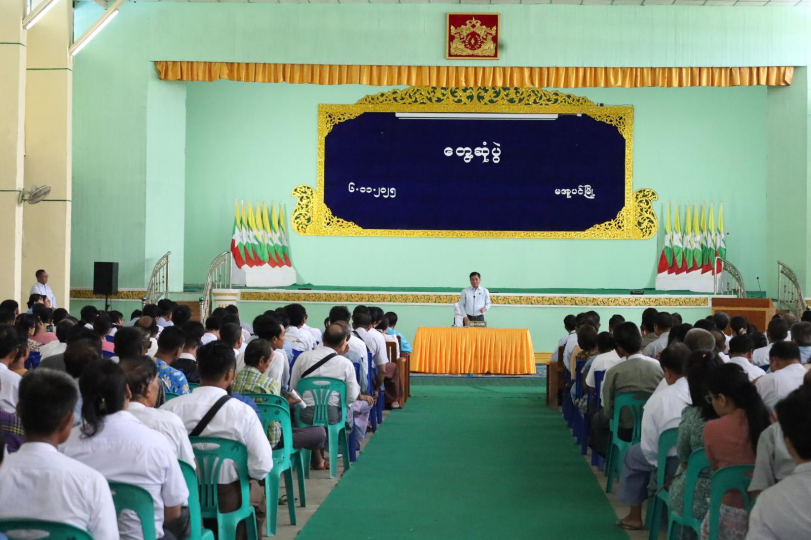 ဧရာဝတီတိုင်းဒေသကြီး၊ မအူပင်ခရိုင်၊ မအူပင်မြို့၌ စီးပွားရေးနှင့်ကူးသန်းရောင်းဝယ်ရေးဝန်ကြီးဌာန ပြည်ထောင်စုဝန်ကြီး ဦးချစ်ဆွေနှင့် ဌာနဆိုင်ရာများ၊ အသင်းအဖွဲ့များ၊ စီးပွားရေးလုပ်ငန်းရှင်များ တွေ့ဆုံပွဲအား ယနေ့နံနက် ၉ နာရီက အမှတ် (၄) ရပ်ကွက်ရှိ တိုးရွှေဝါခန်းမတွင် ကျင်းပပြုလုပ်သည်။
