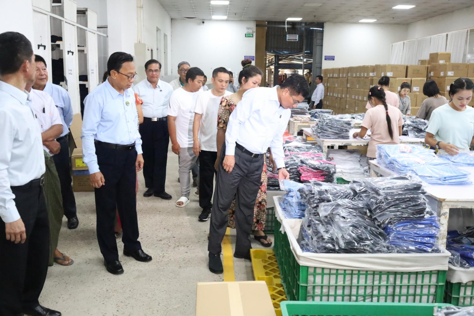 ယင်းနောက် ပြည်ထောင်စုဝန်ကြီးနှင့် အဖွဲ့သည် ညောင်ဝိုင်းကျေးရွာရှိ မအူပင်စီးပွားရေးနှင့် ဖွံ့ဖြိုးတိုးတက်ရေး ကုမ္ပဏီ(စက်မှုဇုံ)ရှိ NEW TALENT အထည်ချုပ်စက်ရုံ အစည်းဝေးခန်းမ၌ ဥက္ကဋ္ဌဦးအောင်ကျော်မင်း၊ ဒါရိုက်တာဦးအေးသောင်း နှင့် NEW TALENT မန်နေဂျာ ဒေါ်ညိုညိုမွှေး၊ WILK MYANMAR ကုမ္ပဏီ မန်နေဂျာဦးသိန်းထိုက်၊ Shanze Gloves ကုမ္ပဏီ မန်နေဂျာ ဒေါ်သူဇာအေး တို့နှင့် တွေ့ဆုံခဲ့ပြီး ဒါရိုက်တာဦးအေးသောင်းမှ စက်မှုဇုန်တွင် ဆောင်ရွက် ထားရှိမှုနှင့် ဆက်လက်ဆောင်ရွက်မည့် လုပ်ငန်းစဉ်များအား Power Pointဖြင့် ရှင်းလင်းတင်ပြပြီး ပြည်ထောင်စုဝန်ကြီးမှ လိုအပ်သည်များ လမ်းညွှန်မှာကြားခဲ့သည်။
