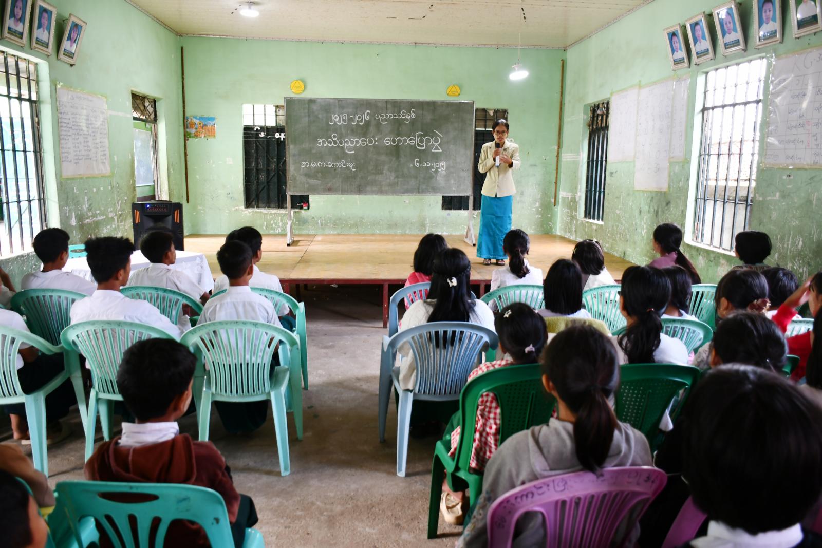 အသိပညာပေးဟောပြောရာတွင် ပြန်ကြားရေးနှင့်ပြည်သူ့ဆက်ဆံရေးဦးစီးဌာန၊ မူဆယ်ခရိုင်ရုံးမှ ဦးစီးအရာရှိ ဒေါ်စန္ဒာဝင်းက မူးယစ်ဆေးဝါးကင်းစင်သည့် ကျောင်းသား/ကျောင်းသူ လူငယ်များဖြစ်ပေါ်လာစေရန် ရည်ရွယ်၍ မူးယစ်ဆေးဝါးသုံးစွဲခြင်းကြောင့် ရရှိလာသည့် ရောဂါများ၊ မူးယစ်ဆေးဝါး၏ ဆိုးကျိုးများအကြောင်းကို ဟောပြောခဲ့သည်။ ဆက်လက်၍ ဒုတိယဦးစီးမှူး ဒေါ်ဇာဖြိုးလွင်က ကျောင်းသား/သူများအနေဖြင့် ကျောင်းစာအပြင် ပြင်ပစာအုပ်စာစောင်များ လေ့လာဖတ်ရှုပြီး ပြင်ပဗဟုသုတ တိုးပွားစေရန် စာဖတ်ကြပါခေါင်းစဉ်နှင့် ဒုတိယဦးစီးမှူး ဒေါ်ဆိုင်းမိုင်က ကလေးအလုပ်သမားပပျောက်ရေး အကြောင်းတို့ကို ဟောပြောခဲ့ပါသည်။